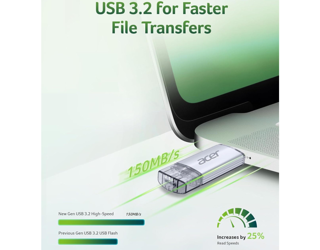 | USB Flash Acer UT300 256GB Dual Drive USB-C & USB-A, Retail |
