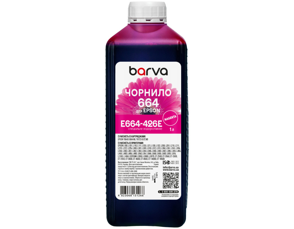 | Більшість з нас чули, що на відміну від лазерної техніки, яка формує зображення за допомогою тонера, струменева техніка використовує для друку спеціальні чорнила (краска для принтерів). Чорнило для Epson 664 M спеціальне 1 л, водорозчинне, пурпурове Barva (E664-426e) використовується переважно для заправки ПЗК та СБПЧ. Чорнила E664-426e Barva мають офіційну гарантію від виробника – ТОВ "В.М.". При виборі чорнила для принтерів Вам також необхідно звернути увагу на колір картриджа, який плануєте заправляти. Дані чорнила Barva мають колір – magenta (пурпурний). Виробник гарантує безперебійну роботу чорнил протягом всього терміну використання, який складає – 3 роки. Тип чорнил E664-426e Barva – Водорозчинні. Українська компанія ТОВ «В.М.» займається виробництвом чорнил під торговою маркою Barva вже багато років. На базі власної лабораторії відбувається як розробка нових формул, так і неперервний контроль якості продукції, що випускається. При виробництві чорнил виробник слідує стандартам ISO 9001:2015 та ISO 14001:2015. Чорнила Epson ТМ Barva повністю сумісні не тільки з чорнилами ТМ Patron, але й з чорнилами інших виробників. Для досягнення оптимального результату в передачі кольору та стійкості до світла ми рекомендуємо використовувати комбінацію – Фотопапір для струменевого друкуBarva + чорнила Barva. Дана фарба для принтера Barva має фасовку – 1 л: Фасовки 1 кг/1 л/18 кг будуть зручними для сервісних центрів або користувачів, які часто стикаються з необхідністю заправки картриджа або резервуарів друкуючих пристроїв.. Також рекомендуємо Вам звернути увагу на ще один варіант фасовки для сервісних центрів– Service-Pack. Ви можете купити Чорнило для Epson 664 M спеціальне 1 л, водорозчинне, пурпурове Barva (E664-426e) в нашому інтернет-магазині з доставкою по Києву та всій Україні. |