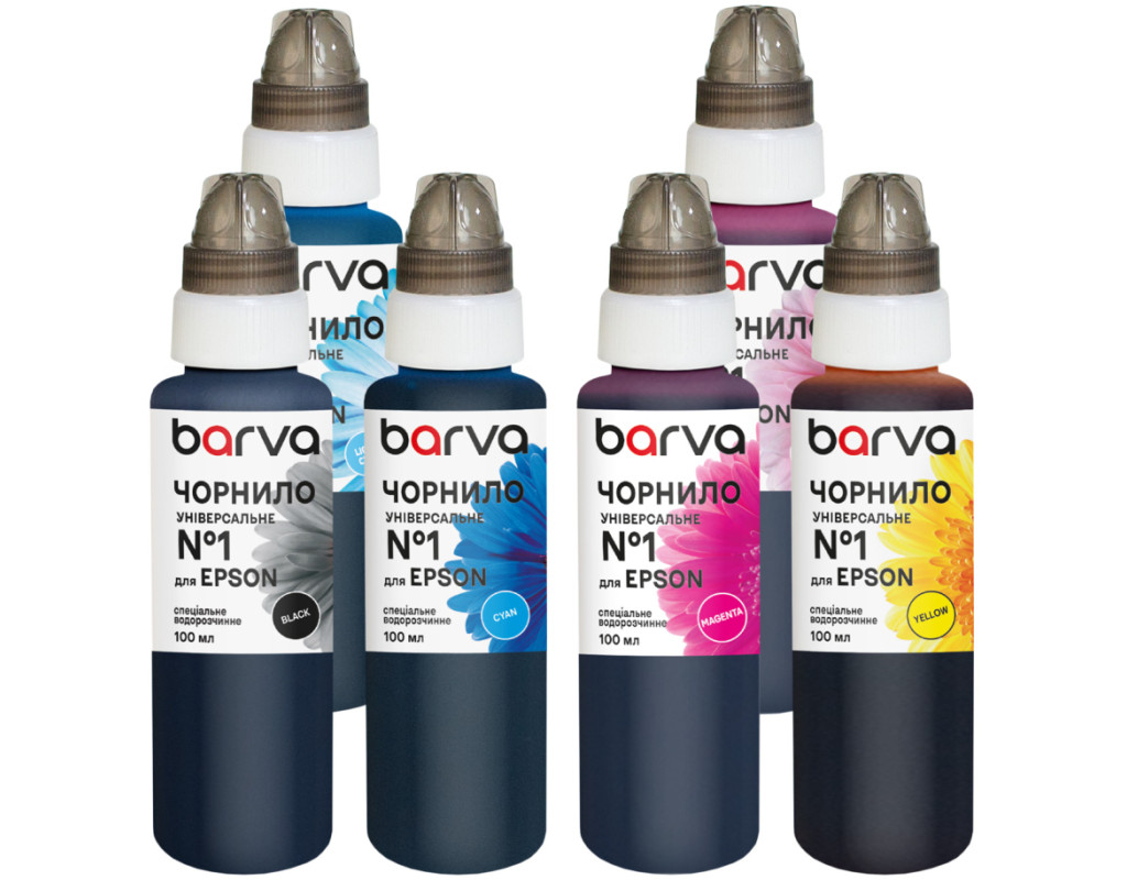 | Професійні чорнила Barva для струменевого друку Чорнила торгової марки Barva призначені для заправки струменевих картриджів, систем безперервної подачі чорнил (СБПЧ) та перезаправних картриджів (ПЗК). Продукт розробляється та виготовляється на території України з дотриманням сучасних стандартів якості. Це забезпечує стабільну роботу друкувальної техніки та передбачуваний результат під час кожного друку. Висока якість та точна передача кольорів Кожна партія чорнил проходить обов’язковий випускний контроль, що гарантує постійну якість продукції. Збалансований склад чорнил Barva забезпечує насичені кольори, плавні переходи відтінків та реалістичну передачу кольору як під час друку текстових матеріалів, так і фотографій. Сумісність і практичність Чорнила повністю сумісні з оригінальними чорнилами та можуть використовуватися для дозаправки продукції інших виробників. Така універсальність робить їх зручним вибором для щоденного використання та професійних завдань. Тривалий термін зберігання дозволяє зберігати стабільні характеристики чорнил без втрати якості. Оптимальний вибір для фотодруку Покращені показники світлостійкості та можливість побудови індивідуального ICC-профілю роблять чорнила Barva придатними для професійного фотодруку. Для досягнення максимальної точності кольорів рекомендується використовувати фотопапір Barva, який можна підібрати за щільністю, типом покриття та форматом. |
