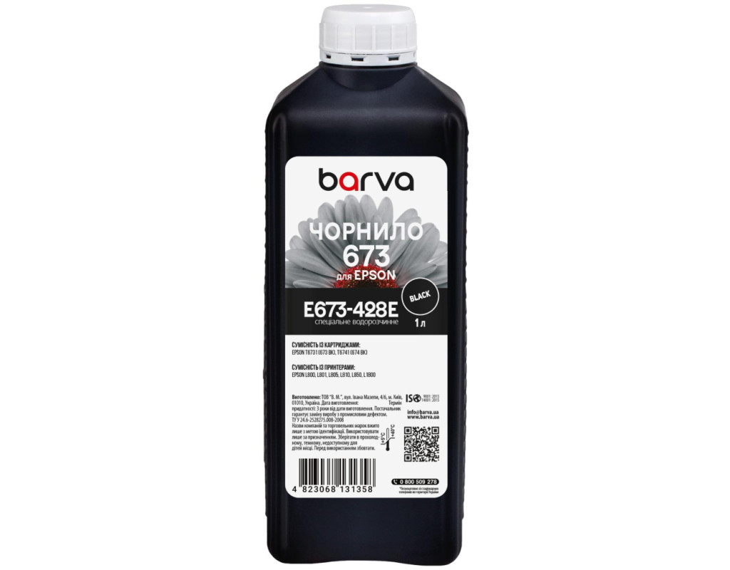 | Більшість з нас чули, що на відміну від лазерної техніки, яка формує зображення за допомогою тонера, струменева техніка використовує для друку спеціальні чорнила (краска для принтерів). Чорнило для Epson 673 BK спеціальне 1 л, водорозчинне, чорне Barva (E673-428e) використовується переважно для заправки ПЗК та СБПЧ. Чорнила E673-428e Barva мають офіційну гарантію від виробника – ТОВ "В.М.". При виборі чорнила для принтерів Вам також необхідно звернути увагу на колір картриджа, який плануєте заправляти. Дані чорнила Barva мають колір – black (чорний). Виробник гарантує безперебійну роботу чорнил протягом всього терміну використання, який складає – 3 роки. Тип чорнил E673-428e Barva – Водорозчинні. Українська компанія ТОВ «В.М.» займається виробництвом чорнил під торговою маркою Barva вже багато років. На базі власної лабораторії відбувається як розробка нових формул, так і неперервний контроль якості продукції, що випускається. При виробництві чорнил виробник слідує стандартам ISO 9001:2015 та ISO 14001:2015. Чорнила Epson ТМ Barva повністю сумісні не тільки з чорнилами ТМ Patron, але й з чорнилами інших виробників. Для досягнення оптимального результату в передачі кольору та стійкості до світла ми рекомендуємо використовувати комбінацію – Фотопапір для струменевого друкуBarva + чорнила Barva. Дана фарба для принтера Barva має фасовку – 1 л: Фасовки 1 кг/1 л/18 кг будуть зручними для сервісних центрів або користувачів, які часто стикаються з необхідністю заправки картриджа або резервуарів друкуючих пристроїв.. Також рекомендуємо Вам звернути увагу на ще один варіант фасовки для сервісних центрів– Service-Pack. Ви можете купити Чорнило для Epson 673 BK спеціальне 1 л, водорозчинне, чорне Barva (E673-428e) в нашому інтернет-магазині з доставкою по Києву та всій Україні. |