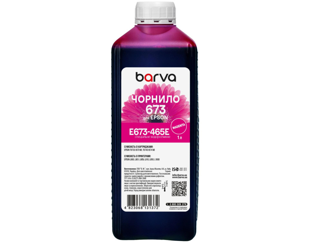 | Більшість з нас чули, що на відміну від лазерної техніки, яка формує зображення за допомогою тонера, струменева техніка використовує для друку спеціальні чорнила (краска для принтерів). Чорнило для Epson 673 M спеціальне 1 л, водорозчинне, пурпурове Barva (E673-465e) використовується переважно для заправки ПЗК та СБПЧ. Чорнила E673-465e Barva мають офіційну гарантію від виробника – ТОВ "В.М.". При виборі чорнила для принтерів Вам також необхідно звернути увагу на колір картриджа, який плануєте заправляти. Дані чорнила Barva мають колір – magenta (пурпурний). Виробник гарантує безперебійну роботу чорнил протягом всього терміну використання, який складає – 3 роки. Тип чорнил E673-465e Barva – Водорозчинні. Українська компанія ТОВ «В.М.» займається виробництвом чорнил під торговою маркою Barva вже багато років. На базі власної лабораторії відбувається як розробка нових формул, так і неперервний контроль якості продукції, що випускається. При виробництві чорнил виробник слідує стандартам ISO 9001:2015 та ISO 14001:2015. Чорнила Epson ТМ Barva повністю сумісні не тільки з чорнилами ТМ Patron, але й з чорнилами інших виробників. Для досягнення оптимального результату в передачі кольору та стійкості до світла ми рекомендуємо використовувати комбінацію – Фотопапір для струменевого друкуBarva + чорнила Barva. Дана фарба для принтера Barva має фасовку – 1 л: Фасовки 1 кг/1 л/18 кг будуть зручними для сервісних центрів або користувачів, які часто стикаються з необхідністю заправки картриджа або резервуарів друкуючих пристроїв.. Також рекомендуємо Вам звернути увагу на ще один варіант фасовки для сервісних центрів– Service-Pack. Ви можете купити Чорнило для Epson 673 M спеціальне 1 л, водорозчинне, пурпурове Barva (E673-465e) в нашому інтернет-магазині з доставкою по Києву та всій Україні. |