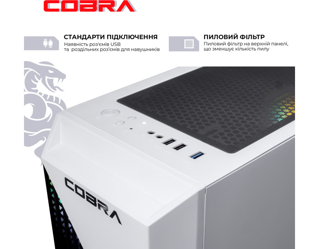 Професійна збірка комп`ютера COBRA забезпечить оптимальний повітряний потік всередині корпусу, а значить і відмінне охолодження всіх компонентів ПК.