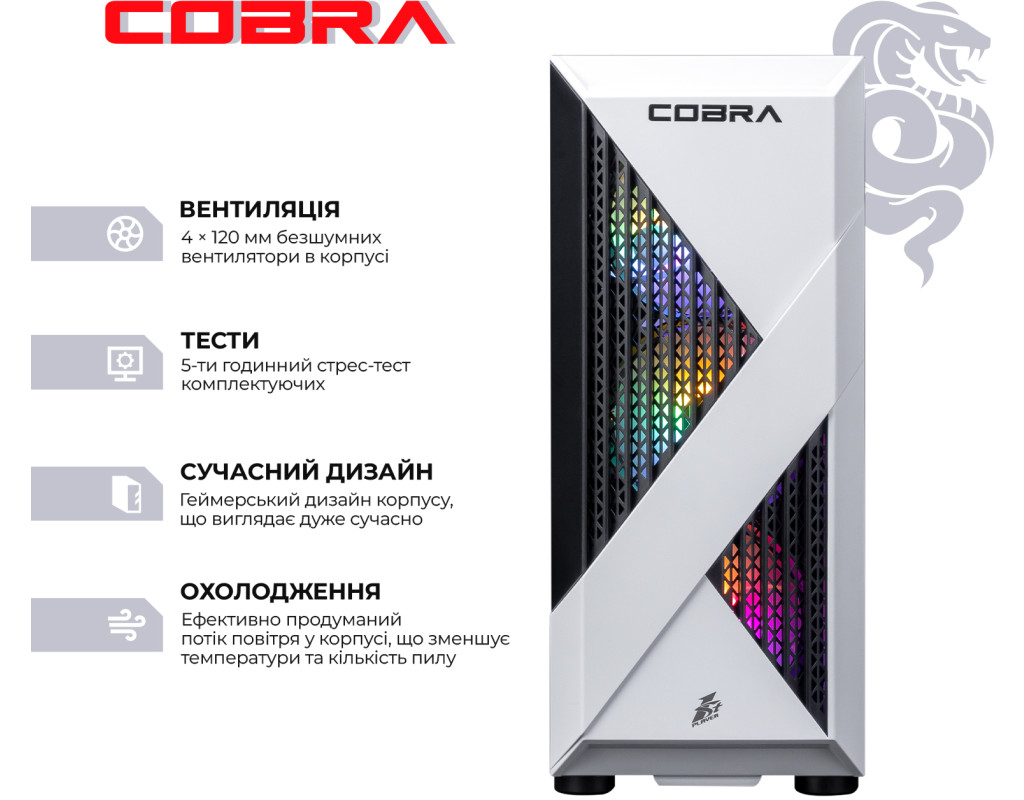 Професійна збірка комп`ютера COBRA забезпечить оптимальний повітряний потік всередині корпусу, а значить і відмінне охолодження всіх компонентів ПК.