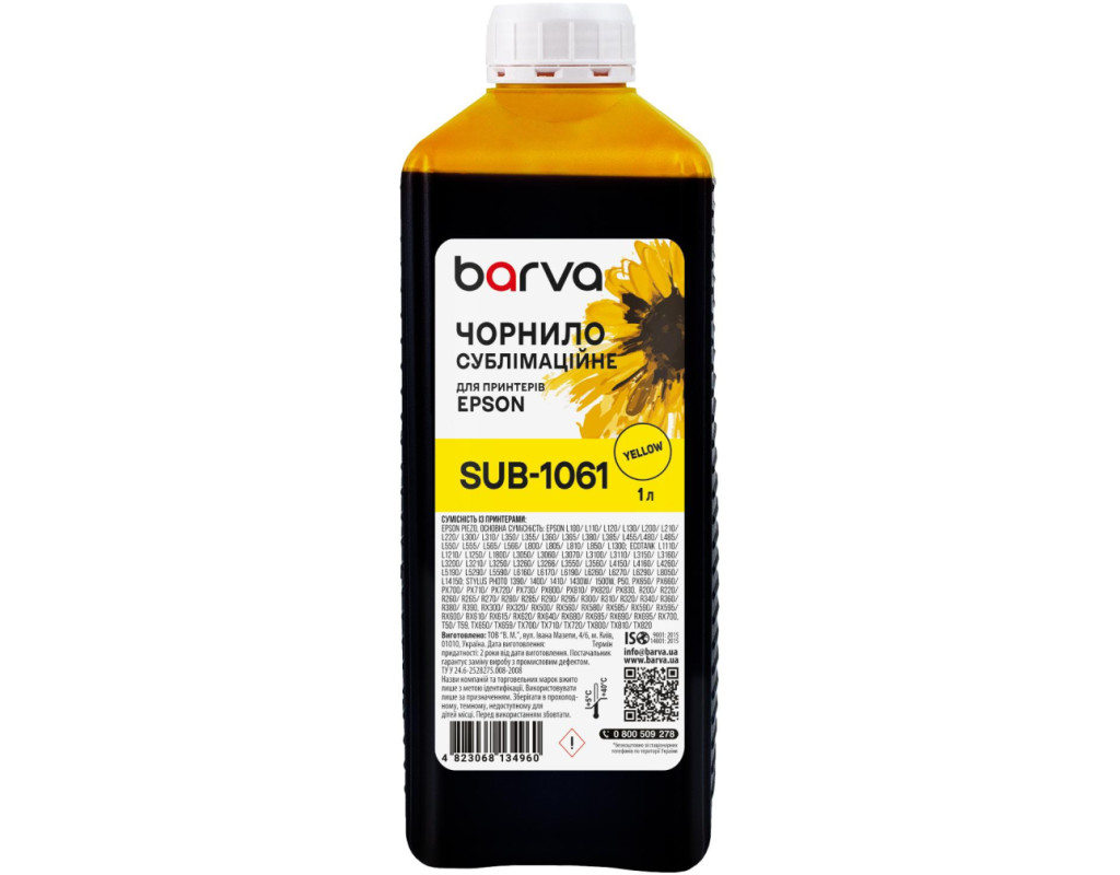 | Сублімаційні чорнила – спеціальний тип чорнил, що використовується для перенесення зображень на текстиль, метал, кераміку, пластик і т.д. Чорнило сублімаційне для настільних принтерів Epson 1 л, жовте Barva (SUB-1061) використовується для заправки настільних принтерів Epson. Чорнила SUB-1061 Barva мають офіційну гарантію – АТ000953. При виборі чорнила Вам також необхідно звернути увагу на колір картриджа, який плануєте заправляти. Ці чорнила Barva мають колір – yellow (жовтий). Виробник гарантує безперебійну роботу чорнил протягом всього терміну використання, який складає – 2 роки. Тип чорнил SUB-1061 Barva – Сублімаційні. Українська компанія ТОВ «В.М.» виготовляє чорнила під торговою маркою Barva вже багато років. На базі власної лабораторії відбувається як розробка нових формул, так і неперервний контроль якості продукції, що випускається. При виробництві чорнил виробник слідує стандартам ISO 9001:2015 та ISO 14001:2015. Для досягнення найкращого результату в передачі кольору та стійкості до світла ми рекомендуємо використовувати комбінацію – Спеціальний папір для сублімаційного друку Barva + чорнила Barva. Дана фарба для принтера Epson Barva має фасовку – 1 л, що має наступні особливості: Чорнила для принтера Epson SUB-1061 Barva 90 гр./100 мл розфасовані в спеціальні флакони для зручної заправки; Ретельно підібраний поліетиленовий флакон має зручну насадку-носик, яка дозволяє легко заправити картриджі чи резервуари принтера без шприца; Невеликий об’єм чорнил ідеально підходить для користувачів, які друкують небагато; Чистота при заправці завдяки зручному флакону; Заправка в резервуар принтера: Зніміть кришку з флакону, відкрийте заглушки на резервуари з чорнилами на пристрої; Переконайтеся, що немає помилки з кольором чорнил; За допомогою носика на флаконі перелийте чорнила в ємності пристрою. Чорнила SUB-1061 Barva, поради щодо використання: Підготуйте майбутній малюнок для переносу у дзеркальному зображенні. Надрукуйте тестовий аркуш для перевірки, чи все правильно зроблено. Перенесіть підготовлене зображення на необхідну поверхню за допомогою термопресу. Якщо плануєте переносити зображення на текстиль, обирайте тканину із вмістом синтетики не менше 50%. Ви можете купити Чорнило сублімаційне для настільних принтерів Epson 1 л, жовте Barva (SUB-1061) в нашому інтернет-магазині з доставкою по Києву та всій Україні. |