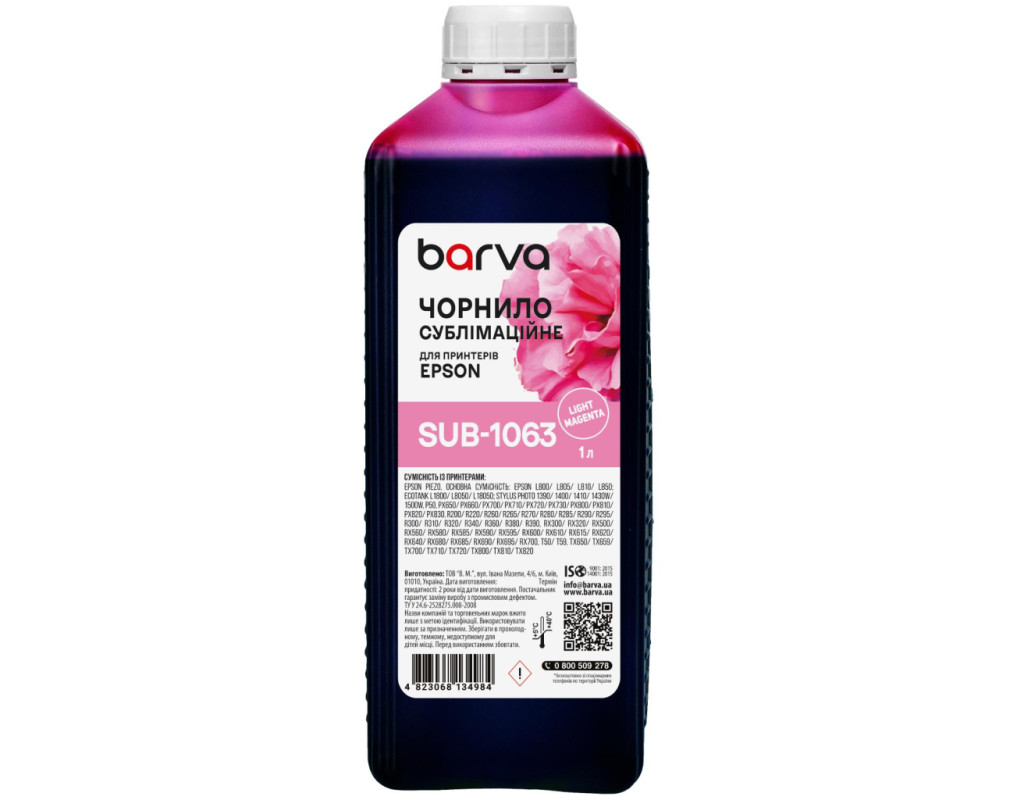 | Сублімаційні чорнила – спеціальний тип чорнил, що використовується для перенесення зображень на текстиль, метал, кераміку, пластик і т.д. Чорнило сублімаційне для настільних принтерів Epson 1 л, світло-пурпурове Barva (SUB-1063) використовується для заправки настільних принтерів Epson. Чорнила SUB-1063 Barva мають офіційну гарантію – АТ000953. При виборі чорнила Вам також необхідно звернути увагу на колір картриджа, який плануєте заправляти. Ці чорнила Barva мають колір – light magenta (світло пурпурний). Виробник гарантує безперебійну роботу чорнил протягом всього терміну використання, який складає – 2 роки. Тип чорнил SUB-1063 Barva – Сублімаційні. Українська компанія ТОВ «В.М.» виготовляє чорнила під торговою маркою Barva вже багато років. На базі власної лабораторії відбувається як розробка нових формул, так і неперервний контроль якості продукції, що випускається. При виробництві чорнил виробник слідує стандартам ISO 9001:2015 та ISO 14001:2015. Для досягнення найкращого результату в передачі кольору та стійкості до світла ми рекомендуємо використовувати комбінацію – Спеціальний папір для сублімаційного друку Barva + чорнила Barva. Дана фарба для принтера Epson Barva має фасовку – 1 л, що має наступні особливості: Чорнила для принтера Epson SUB-1063 Barva 90 гр./100 мл розфасовані в спеціальні флакони для зручної заправки; Ретельно підібраний поліетиленовий флакон має зручну насадку-носик, яка дозволяє легко заправити картриджі чи резервуари принтера без шприца; Невеликий об’єм чорнил ідеально підходить для користувачів, які друкують небагато; Чистота при заправці завдяки зручному флакону; Заправка в резервуар принтера: Зніміть кришку з флакону, відкрийте заглушки на резервуари з чорнилами на пристрої; Переконайтеся, що немає помилки з кольором чорнил; За допомогою носика на флаконі перелийте чорнила в ємності пристрою. Чорнила SUB-1063 Barva, поради щодо використання: Підготуйте майбутній малюнок для переносу у дзеркальному зображенні. Надрукуйте тестовий аркуш для перевірки, чи все правильно зроблено. Перенесіть підготовлене зображення на необхідну поверхню за допомогою термопресу. Якщо плануєте переносити зображення на текстиль, обирайте тканину із вмістом синтетики не менше 50%. Ви можете купити Чорнило сублімаційне для настільних принтерів Epson 1 л, світло-пурпурове Barva (SUB-1063) в нашому інтернет-магазині з доставкою по Києву та всій Україні. |