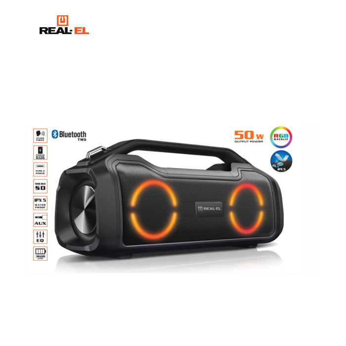 | Акустична система REAL-EL X-747 Black — це поєднання сучасних технологій і витонченого дизайну, що робить її ідеальним вибором для любителів якісного звуку. Ця портативна колонка створена для тих, хто цінує потужність та надійність у кожній ноти. Завдяки бездротовому підключенню через Bluetooth, ви зможете насолоджуватися улюбленою музикою без зайвих дротів і обмежень. REAL-EL X-747 Black відзначається потужністю у 50 Вт, що забезпечує виняткову гучність і чистоту звуку. Ця акустична система має 2.0 канали та двохполосну конструкцію, які гарантують деталізацію та широкий динамічний діапазон, дозволяючи відчути кожну ноту так, як задумано виконавцем. Підключити її можна за допомогою AUX чи скористатися зручністю бездротових технологій. Установка моделі здійснюється на полиці, що дозволяє органічно інтегрувати її в домашній інтер'єр або робочий простір. Завдяки вбудованому акумулятору ви зможете насолоджуватися якісним звуком без необхідності постійного підключення до електромережі, що перетворює цю акустичну систему на чудовий вибір для використання на вулиці або під час подорожей. Особливості REAL-EL X-747 Black включають підтримку SD-карт, що дає змогу відтворювати музику безпосередньо з карти пам'яті. Це зручне рішення для тих, хто хоче мати великий плейлист завжди під рукою. Корпус колонки виготовлений з міцного пластику, що забезпечує не тільки легкість, але й виняткову довговічність. Завдяки цьому REAL-EL X-747 Black здатна витримати активне використання в різних умовах, зберігаючи при цьому свій привабливий зовнішній вигляд. REAL-EL X-747 Black ідеально підходить для тих, хто шукає потужну акустичну систему з відмінними характеристиками та мобільністю. Вона стане вашою надійною супутницею, де б ви не знаходилися, наповнюючи простір якісним звуком та даруючи насолоду від улюблених мелодій. Тож, якщо ви прагнете поповнити свою колекцію аудіопристроїв потужними, надійними та якісними колонками, REAL-EL X-747 Black стане вашим найкращим вибором. Відкрийте для себе нові межі звучання з цією вражаючою акустичною системою. |