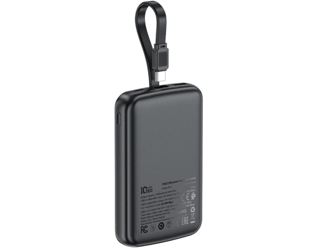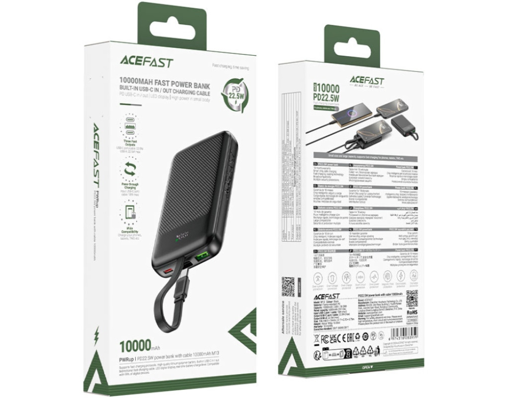 | УМБ Acefast 10000mAh 22.5W PD,QC3.0 2xUSB-C,USB-A, with build Type-C cable, M13 Black |
