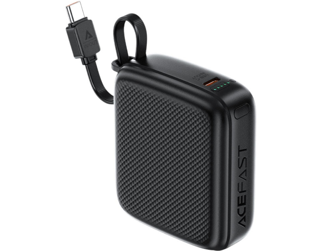 | УМБ Acefast 10000mAh 20W PD,QC3.0 USB-C In/Out with build Type-C cable, M15 Black |