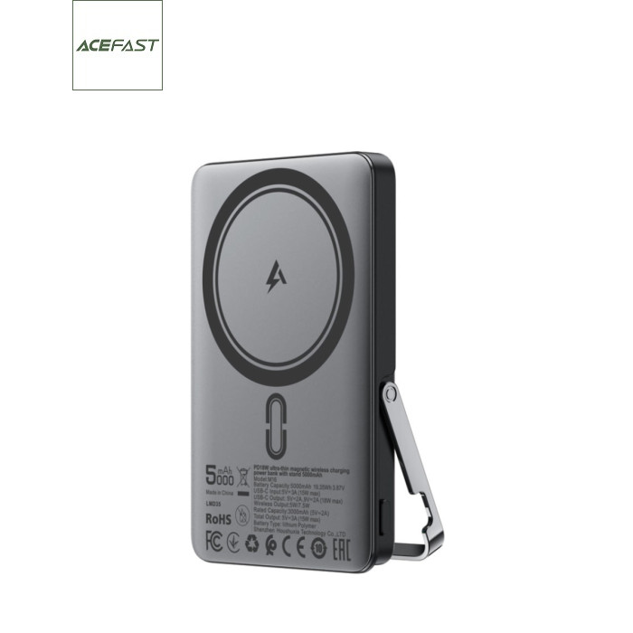 | УМБ Acefast Magnetic Wireless 5000mAh 18W PD,QC3.0 USB-C In/Out,with holder, ультра тонкий M16 Black |