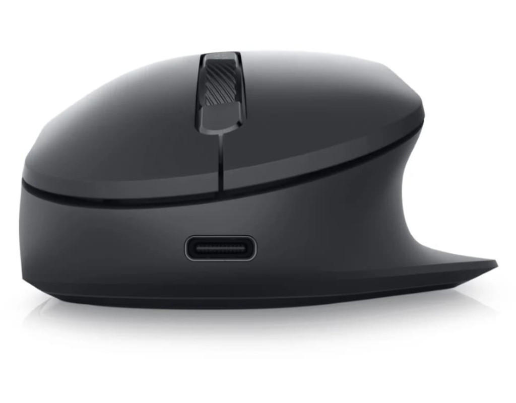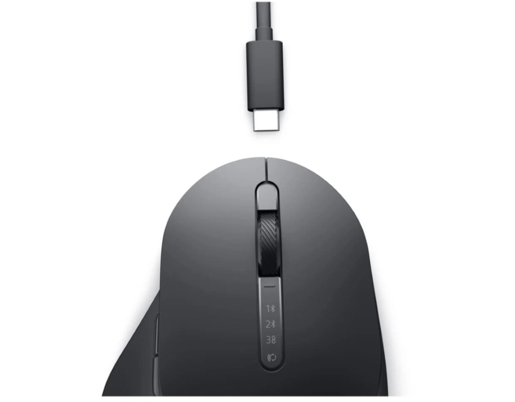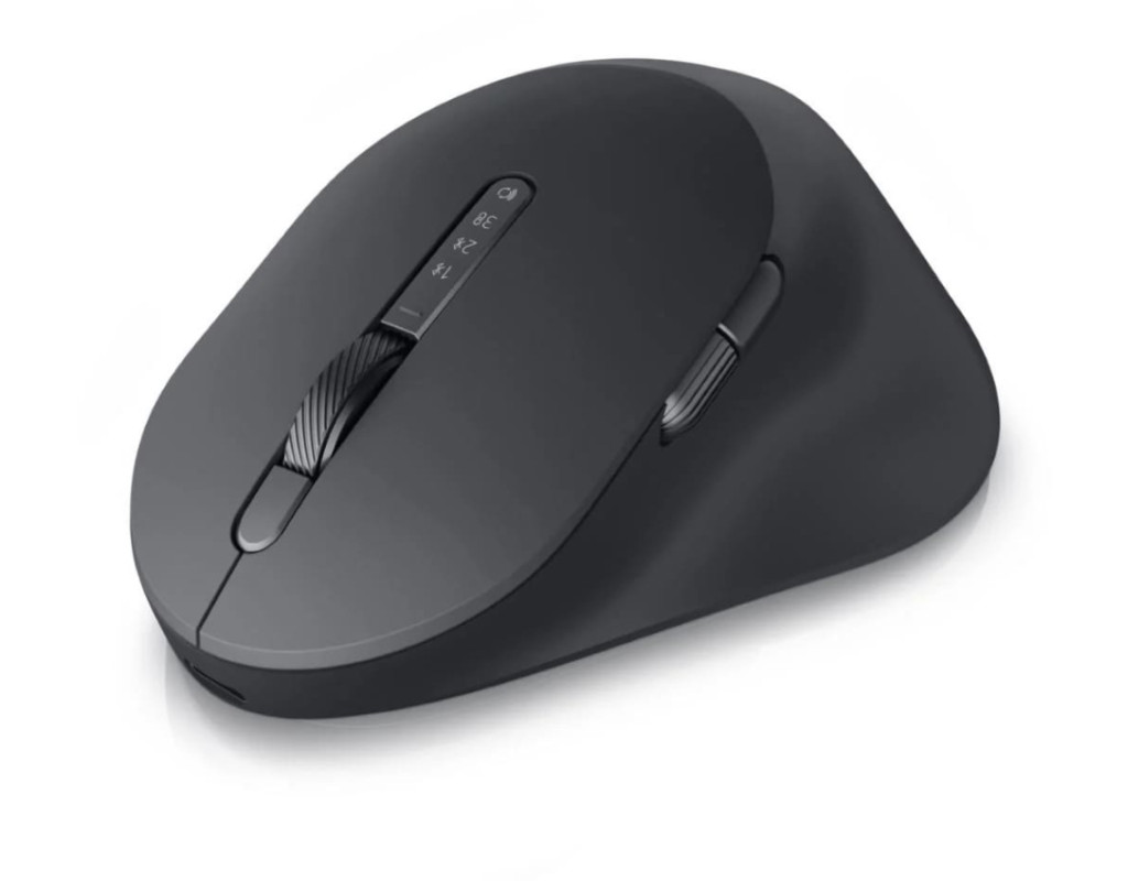 | Dell Pro Premium Mouse MS900 — бездротова миша з підключенням RF 2,4 ГГц і Bluetooth 5.1 та можливістю перемикання між трьома пристроями. Оснащена вертикальним колесом прокручування і бічним колесом для горизонтальної навігації, має регулювання 800–8000 DPI та акумулятор із заряджанням через USB-C. Підтримує відстеження руху на різних типах поверхонь, зокрема на склі, та налаштування параметрів через програму Dell Peripheral Manager для Windows. |