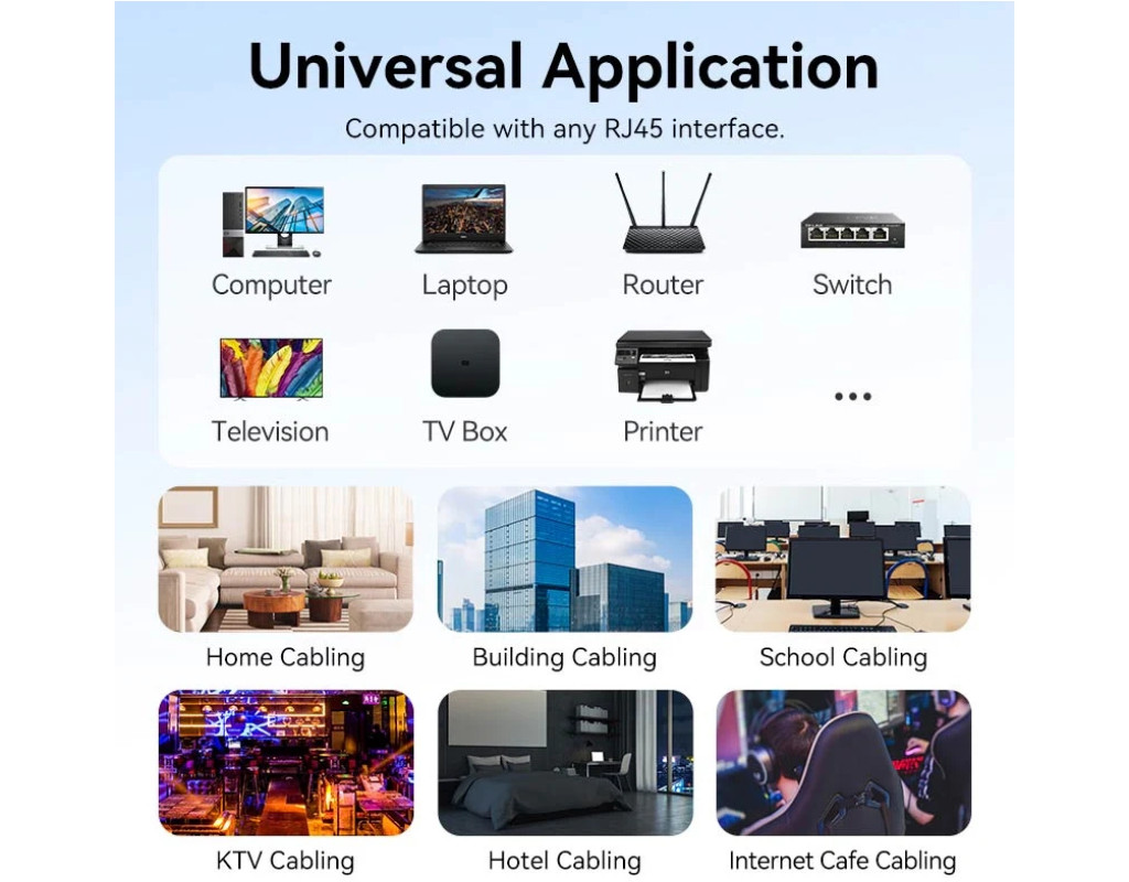 Кабель категорії САТ 6 Мережевий кабель Vention Ethernet RJ45 САТ 6 призначено для комутації комп'ютерних Ethernet-мереж зі стандартами 10BASE-Т (10 Мбіт/с), 100BASE-Т(х) (100 Мбіт/с). Плоский ергономічний перетин кабелю Товщина кабелю становить лише 5.5 мм. Максимально компактний і непомітний. Калібр 26 AWG Кабель складається з 4-х екранованих кручених пар і відповідає калібру 26 AWG. Ізоляція кабелю PVC LSZH Зовнішня оболонка кабелю виготовлена з полівінілхлориду (PVС) з додаванням крейди. Для виготовлення оболонки використовують полімери, які не поширюють горіння під час групового прокладання і не виділяють під час нагрівання галогени (такі кабелі маркують абревіатурою LSZH: low smoke zero halogen - малої димності, який не виділяє галогенів. Кабель дозволяється прокладати і використовувати в закритих зонах, де можуть проходити повітряні потоки системи кондиціонування і вентиляції. Позолочені контакти Патч-корд оснащений з двох сторін роз'ємами-конекторами RJ45, які вкриті шаром золота для чудового передавання даних і довговічності в експлуатації. Широка сумісність Кабель можна використовувати з різними пристроями як у домашніх, так і офісних приміщеннях. |