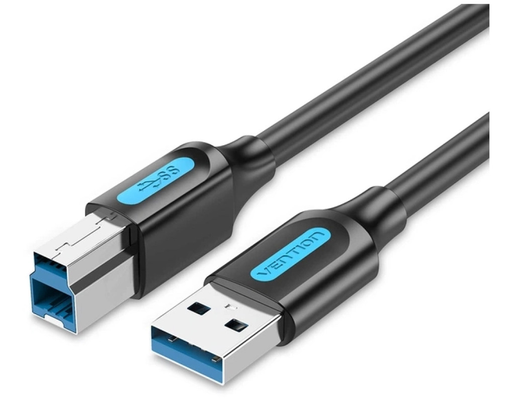 Кабель Vention USB 3.0 Type-A на Type-B 1.5 м, 5 Гбіт/с для зовнішніх HDD та Blu-ray, екранований, струм до 2 А, Чорний Кабель Vention USB 3.0 Type-A на Type-B — це високопродуктивне рішення для підключення, розроблене для з’єднання вашого комп’ютера з периферійними пристроївами, що потребують високої пропускної здатності. Спеціально спроектований для таких пристроїв, як кишені для зовнішніх жорстких дисків, док-станції, приводи Blu-ray та високошвидкісні сканери, цей чорний кабель довжиною 1.5 метра забезпечує ефективну передачу даних та надійне живлення. Завдяки міцній конструкції та дотриманню стандартів SuperSpeed USB, він є ідеальним вибором для користувачів, які прагнуть максимально розкрити потенціал свого цифрового робочого простору. Обов'язкова примітка Будь ласка, перед покупкою уважно перевірте тип порту на вашому конкретному пристрої, оскільки цей кабель оснащений роз’ємом USB 3.0 Type-B квадратної форми, який фізично відрізняється від стандартного роз’єму USB 2.0 Type-B зі скошеним верхом (часто зустрічається на старих принтерах) і є несумісним з ним. Упаковка товару може дещо відрізнятися залежно від партії виробництва, а кабель призначений виключно для обладнання, що вимагає стандартних специфікацій та підключень USB 3.0. Ключові особливості: - Надшвидкісна передача даних: Цей кабель використовує стандарт USB 3.0 для забезпечення вражаючої швидкості передачі даних до 5 Гбіт/с, що приблизно в десять разів швидше, ніж попереднє покоління USB 2.0. Така значна пропускна здатність дозволяє користувачам передавати масивні файли, такі як фільми високої чіткості або об'ємні резервні копії даних, за лічені секунди, а не хвилини. Це кардинально покращує ефективність робочого процесу при виконанні завдань, пов'язаних з великими зовнішніми накопичувачами або веб-камерами високої роздільної здатності.