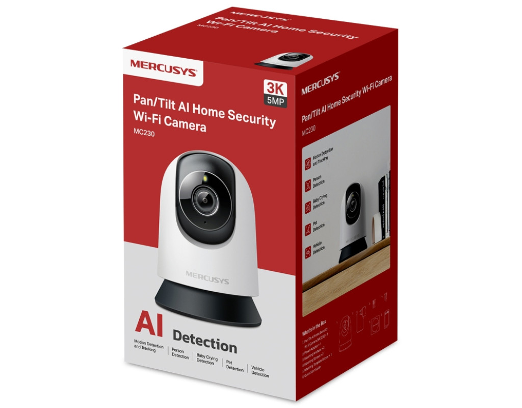 | MERCUSYS MC230 – це внутрішня IP-камера з високою роздільною здатністю 3K та широким кутом огляду. Поворотний механізм дозволяє контролювати простір майже по всьому периметру кімнати. Вбудовані функції AI допомагають розпізнавати різні типи подій та зменшують кількість зайвих сповіщень. Камера підтримує двосторонній аудіозв’язок і локальне зберігання відео. Підходить для щоденного домашнього використання. |
