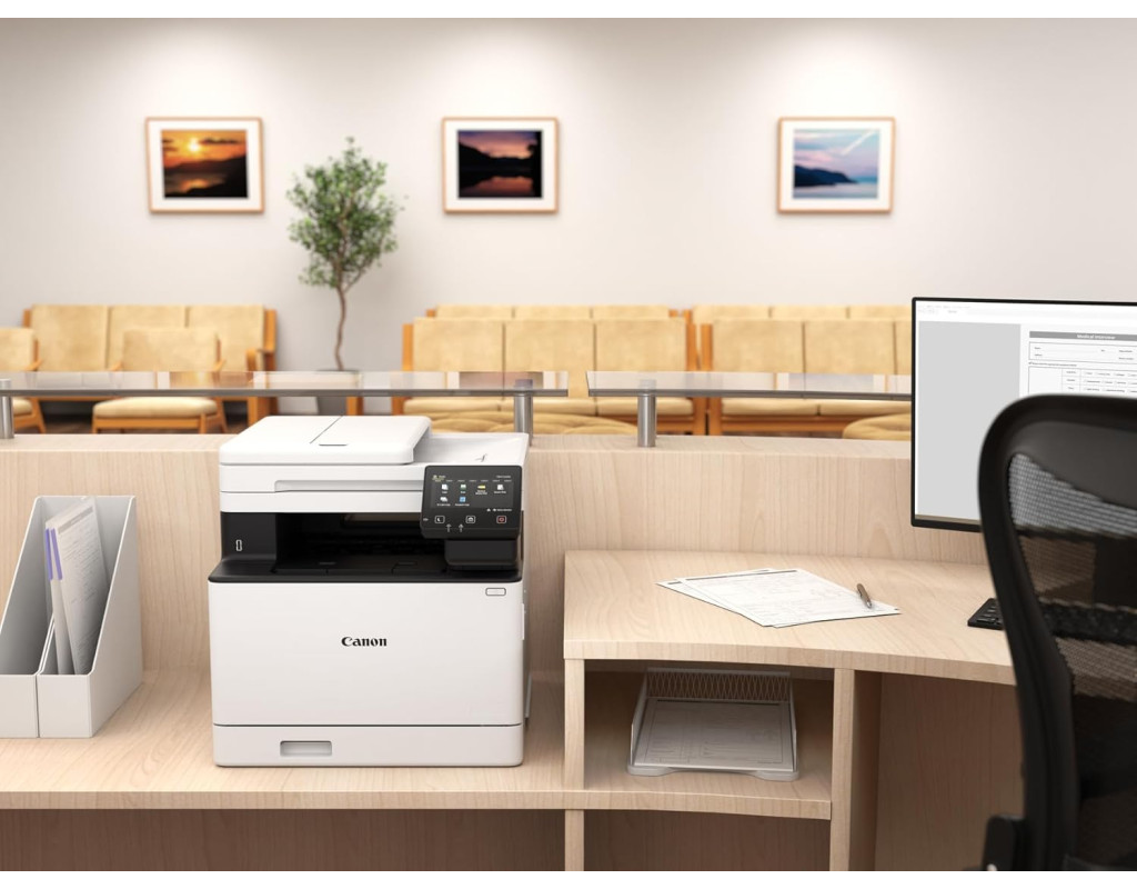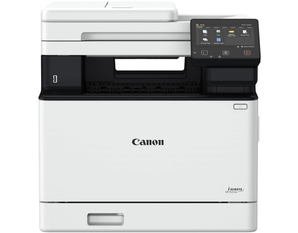 Canon i-SENSYS MF752Cdw II — це кольоровий лазерний багатофункціональний пристрій (БФП) із Wi-Fi, призначений для офісного використання. Пристрій оснащений 12.7 см кольоровим сенсорним РК-екраном для інтуїтивного керування. Лотки включають 250-аркушеву касету, 50-аркушевий багатоцільовий лоток і 150-аркушевий лоток прийому. Автоматичний подавальник документів (DADF) вміщує 50 аркушів, а щільність паперу підтримується від 60 до 163 г/м2 (до 200 г/м2 із глянсовим папером). Продуктивність Принтер забезпечує швидкість 33 стор/хв як для чорно-білого, так і для кольорового друку з роздільною здатністю 1200 x 1200 т/д. Час виходу першої сторінки — 7.1 с. Копіювання до 33 коп/хв (одностороннє), 29 изобр/хв (двостороннє) із масштабуванням 25-400% і максимум 99 копій. Сканер кольоровий із роздільною здатністю 600 x 600 т/д і глибиною 24 біт сканує до 33 з/хв (чорно-білий). Автоматичне двостороннє копіювання та друк підвищують ефективність. Підключення Інтерфейси включають USB 2.0 Hi-Speed, Ethernet (10/100/1000Base-T) і бездротовий 802.11b/g/n із Wireless Direct. Підтримка AirPrint, Canon PRINT Business, Mopria, Google Cloud Print і сканування до E-mail, PC, USB, FTP чи хмари забезпечує гнучкість. Додаткові функції: безпечний друк і друк із USB (JPEG/TIFF/PDF). Можливості Пристрій підтримує широкий спектр носіїв: звичайний, щільний, тонкий, кольоровий, глянсовий папір, етикетки, листівки, конверти. Максимальне навантаження — 50 000 стор/міс, рекомендований об’єм — 750-4000 стор/міс. Сумісність із Windows 11/10/8.1, Server 2022/2016/2012, Mac OS X 10.12+, Linux. Для кого Офісні працівники: Для швидкого друку та сканування документів. Малі бізнеси: Для ефективного кольорового друку та копіювання. Мобільні користувачі: Для бездротового доступу з різних пристроїв. Комплектація Canon i-SENSYS MF752Cdw II, стартові картриджі (2100 стор/чорний, 1100 стор/колір). USB-кабель не входить |