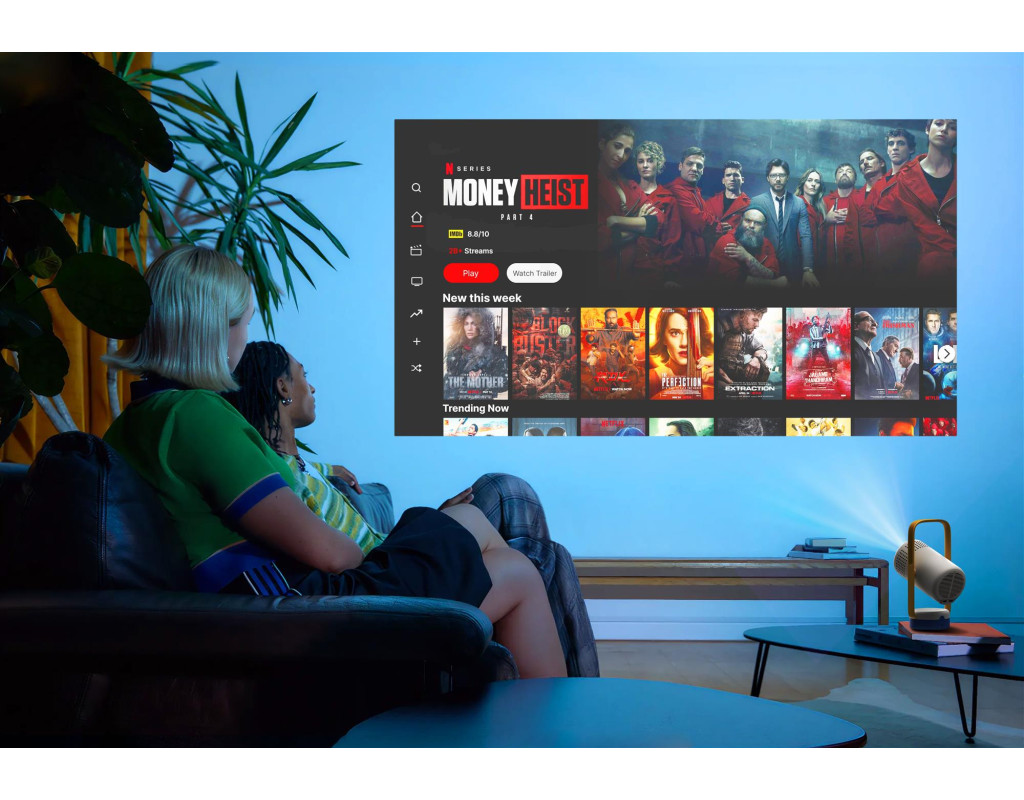 Стильний, привабливий дизайн: Сучасний дизайн Vibe One (Battery Powered) додає індивідуальності та стилю будь-якому простору. Оберіть колір, що пасує вашому стилю — класичний, непідвладний часу сірий або ретро, грайливу синьо-жовту комбінацію. А за допомогою наліпок, що входять до комплекту, ви можете персоналізувати його на свій смак. Вбудований акумулятор, що подовжує веселощі: Маючи до 1.2 години відтворення відео та 4 годин відтворення музики на одному заряді, Vibe One (Battery Powered) вирушить куди завгодно разом з вами. Легко переміщуйтеся з кімнати в кімнату або беріть його на вулицю, не турбуючись про джерело живлення. Творець атмосфери "Все-в-одному": Це більше, ніж просто розумний портативний проектор — подвійні 3W динаміки, налаштовані Sound by JBL, потужно відтворюють ваші улюблені мелодії, тоді як режим Ambient Light Mode (навколишнього освітлення) створює ідеальний настрій. Миттєве налаштування, бездоганна проекція: Легке, автоматичне налаштування щоразу завдяки автоматичній корекції трапецеїдальних спотворень (Auto Keystone Correction) та автофокусу (Auto Focus). Витрачайте менше часу на налаштування та більше часу на насолоду улюбленими фільмами та шоу. Google TV з ліцензійним Netflix: Транслюйте останні голлівудські хіти та шоу, які не можна пропустити, у приголомшливій якості 1080p безпосередньо з Vibe One (Battery Powered). Завдяки миттєвому доступу до 400 000+ фільмів та телевізійних епізодів в одному місці, нескінченні розваги завжди у вас під рукою. Вбудована підставка 160° та ручка для перенесення: Завдяки регульованій підставці на 160°, Vibe One (Battery Powered) дозволяє легко перемикати проекцію зі стіни на стелю, щоб відповідати вашому способу відпочинку. Крім того, підставка слугує зручною ручкою для легкого перенесення в дорозі. Це не просто проектор — це ваш персональний творець атмосфери, готовий до будь-яких пригод. |