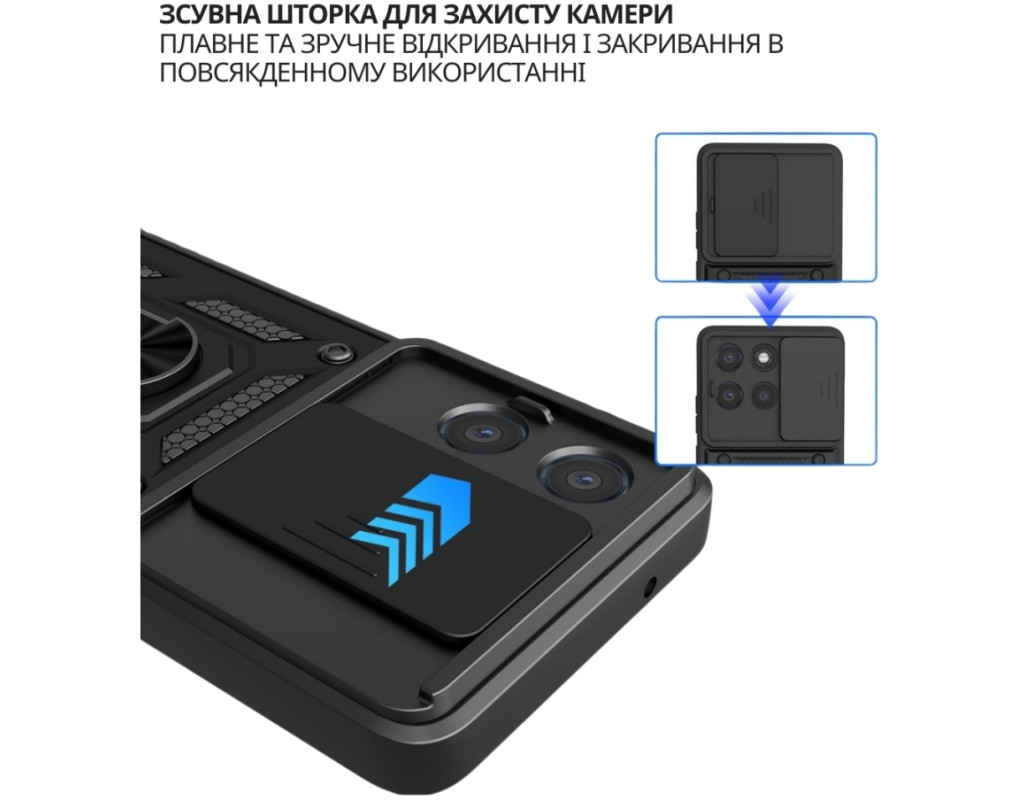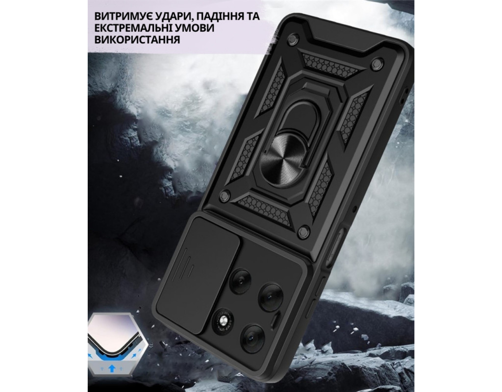 "Протиударний Чохол Military BeCover надійно захищений від будь-яких екстремальних та форс-мажорних ситуацій. Гнучка силіконова панель має жорсткий металізований корпус та кільце-підставку для пальця. Чохол здатний витримати навіть сильні удари та подряпини. Вбудований регульований кронштейн для кільця: кільце, що обертається на 360°, знімається або висувається в якості підставки, щоб звільнити руки. Це дозволить вам використовувати кільце як підставку для гаджета, використовуючи свій смартфон під час перегляду відео, роблячи фото або користуючись Інтернетом. Чохол приємний на дотик, має протиковзне покриття проти поту та відбитків пальців. М'який тонкий матеріал не пошкоджує мобільний телефон, він ударостійкий і піднятий, утворюючи бортики, щоб захистити камеру та екран. Конструкція сумісна з магнітним тримачем (не включаючи магнітне автомобільне кріплення): у цьому випадку може надійно утримувати магнітне автомобільне кріплення та вільно обертатися (не сумісне з бездротовою зарядкою)." |