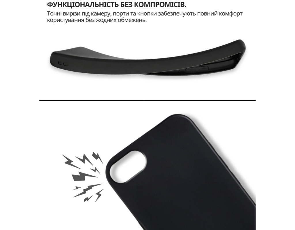 | "Тонкий і еластичний силіконовий чохол забезпечує надійний захист вашого смартфона від механічних пошкоджень, запобігаючи появі подряпин на корпусі. Завдяки високій якості матеріалу, чохол зберігає свою цілісність — він не рветься та не тріскається навіть при тривалому використанні. Чохол легко встановлюється, щільно прилягає до поверхні смартфона, не залишаючи повітряних зазорів, які могли б накопичувати пил, бруд або вологу. Легкий і непомітний, він не додає зайвого об'єму чи ваги вашому пристрою, забезпечуючи надійний захист від ударів, пошкоджень і вологи. Усі вирізи в чохлі точно відповідають роз'ємам і функціональним кнопкам смартфона, що гарантує зручне користування в будь-яких умовах. Силіконове покриття не ковзає, щільно облягає металевий корпус телефону та не перешкоджає доступу до роз'ємів для зарядки, USB-кабелю, гарнітури чи сканера відбитків пальців. Цей силіконовий чохол стане ідеальним вибором для тих, хто шукає стильний і практичний аксесуар для свого смартфона." |
