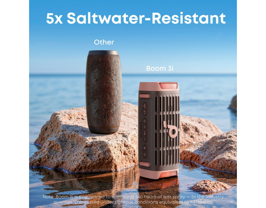 Перший у галузі плаваючий відтворення: залишається у вертикальному положенні та звучить навіть на хвилях. Без спотворень, без занурення — лише гучний, чистий звук для каякінгу, вечірок біля басейну та будь-яких водних пригод. Водонепроникність і пилонепроникність IP68: створений, щоб витримувати вплив стихій, цей Bluetooth-динамік є повністю водонепроникним і пилонепроникним. Найкращий динамік для використання на відкритому повітрі. У 5 разів стійкіший до солоної води та надзвичайно міцний: створений для екстремальних умов — у 5 разів стійкіший до солоної води, поту та бризок. Випробуваний на падіння з висоти 1 м. Ідеальний для пляжних днів і прогулянок на човні, без іржі та корозії. Міцніший за більшість надійних колонок для використання на відкритому повітрі. Подвійний бас із BassUp™ 2.0: потужний звук 50 Вт з басами глибиною до 56 Гц. BassUp™ 2.0 і технологія DSP забезпечують насичені низькі та чіткі високі частоти. Серйозна аудіопродуктивність у компактній портативній колонці. Розумні функції та 16 годин відтворення: 16 годин безперервного відтворення та повний контроль за допомогою додатка. У комплекті йдуть підсилювач голосу, аварійна сигналізація, Buzz Clean і знімний ремінець для розваг без використання рук — усе, що потрібно в надійних зовнішніх колонках. |