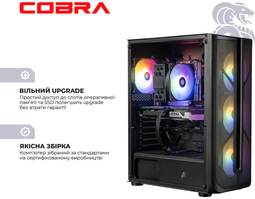 Професійна збірка комп`ютера COBRA забезпечить оптимальний повітряний потік всередині корпусу, а значить і відмінне охолодження всіх компонентів ПК.