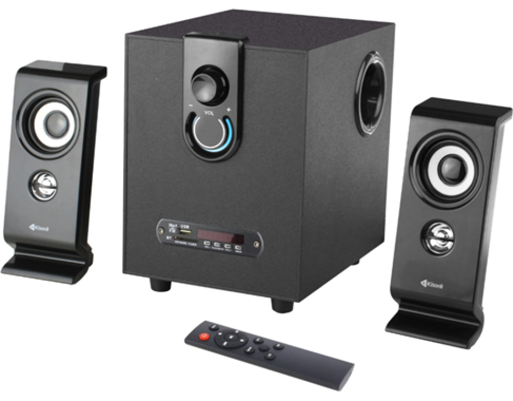 Колонки 2.1 Kisonli TM-9200A, для ПК та ноутбука, живлення 220V + jack 3.5mm, 5W+2x3W, 20Hz-20KHz, з сабвуфером, bluetooth, Black, BOX,