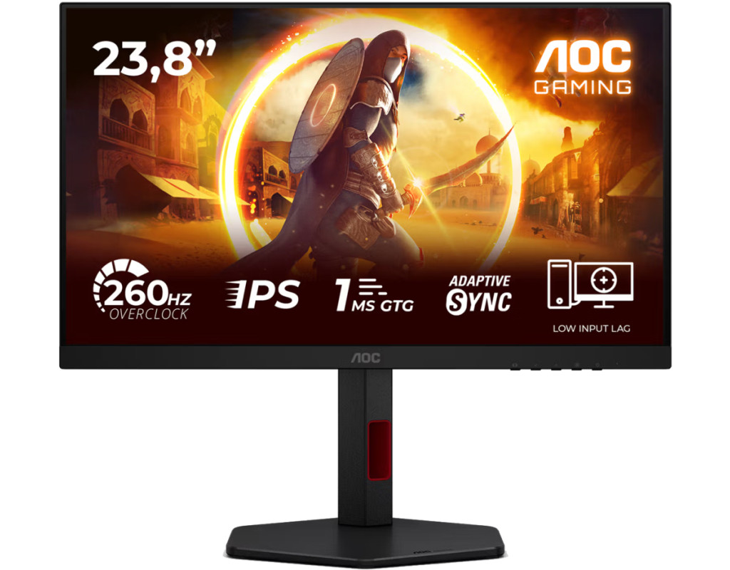23.8", IPS, 1920 x 1080, 240 Гц, 16:9, 300 кд/м2, 1000:1, 18 Вт, 54 х 50 х 21 см, VESA - 100x100 мм, немає, 4.38 кг, червоний, чорний