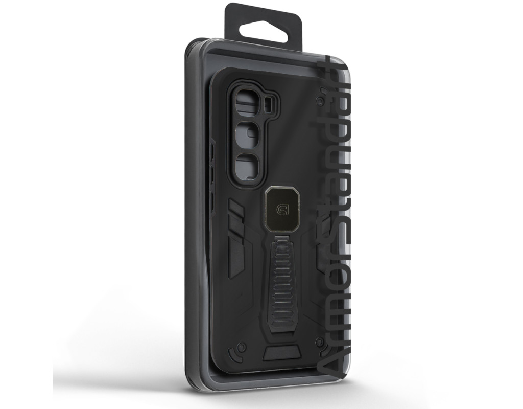 ArmorStandart Proover — це захисний чохол, створений для тих, хто шукає надійність, практичність і продумані деталі. Він забезпечує повноцінний захист смартфона, зберігаючи його функціональність та первісний стан у щоденному використанні. Конструкція поєднує два матеріали: м’який термопластичний поліуретан (TPU) ефективно поглинає удари та запобігає подряпинам, а зовнішній шар із полікарбонату (PC) захищає від механічних пошкоджень і потертостей. Посилені кути мінімізують ризик ушкоджень під час падінь, а блок камери повністю закритий, що забезпечує додатковий захист об’єктивів від подряпин і ударів. На спинці чохла вбудована металева пластина, яка дозволяє використовувати його з магнітними авто-тримачами, забезпечуючи комфорт і безпеку під час керування автомобілем. Чохол оснащений зручною відкидною підставкою, яка дозволяє встановити смартфон горизонтальному або вертикальному положенні для комфортного перегляду відео, відеодзвінків або роботи з контентом. Матове покриття приємне на дотик, стійке до відбитків пальців і подряпин. Особливості:
