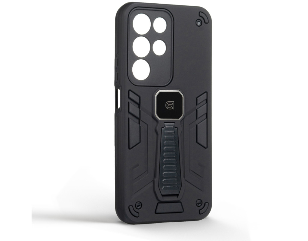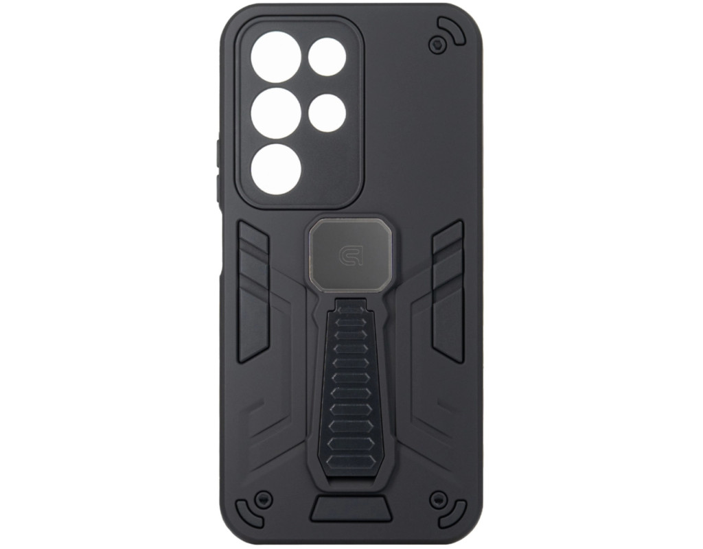 ArmorStandart Proover — це захисний чохол, створений для тих, хто шукає надійність, практичність і продумані деталі. Він забезпечує повноцінний захист смартфона, зберігаючи його функціональність та первісний стан у щоденному використанні. Конструкція поєднує два матеріали: м’який термопластичний поліуретан (TPU) ефективно поглинає удари та запобігає подряпинам, а зовнішній шар із полікарбонату (PC) захищає від механічних пошкоджень і потертостей. Посилені кути мінімізують ризик ушкоджень під час падінь, а блок камери повністю закритий, що забезпечує додатковий захист об’єктивів від подряпин і ударів. На спинці чохла вбудована металева пластина, яка дозволяє використовувати його з магнітними авто-тримачами, забезпечуючи комфорт і безпеку під час керування автомобілем. Чохол оснащений зручною відкидною підставкою, яка дозволяє встановити смартфон горизонтальному або вертикальному положенні для комфортного перегляду відео, відеодзвінків або роботи з контентом. Матове покриття приємне на дотик, стійке до відбитків пальців і подряпин. Особливості: