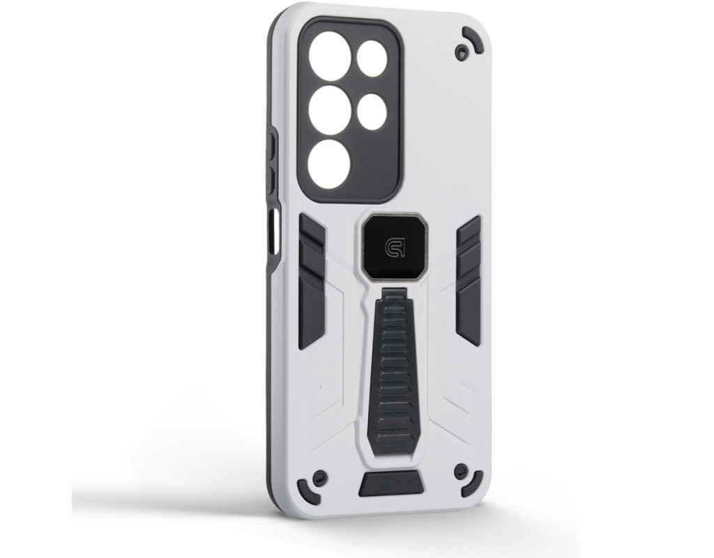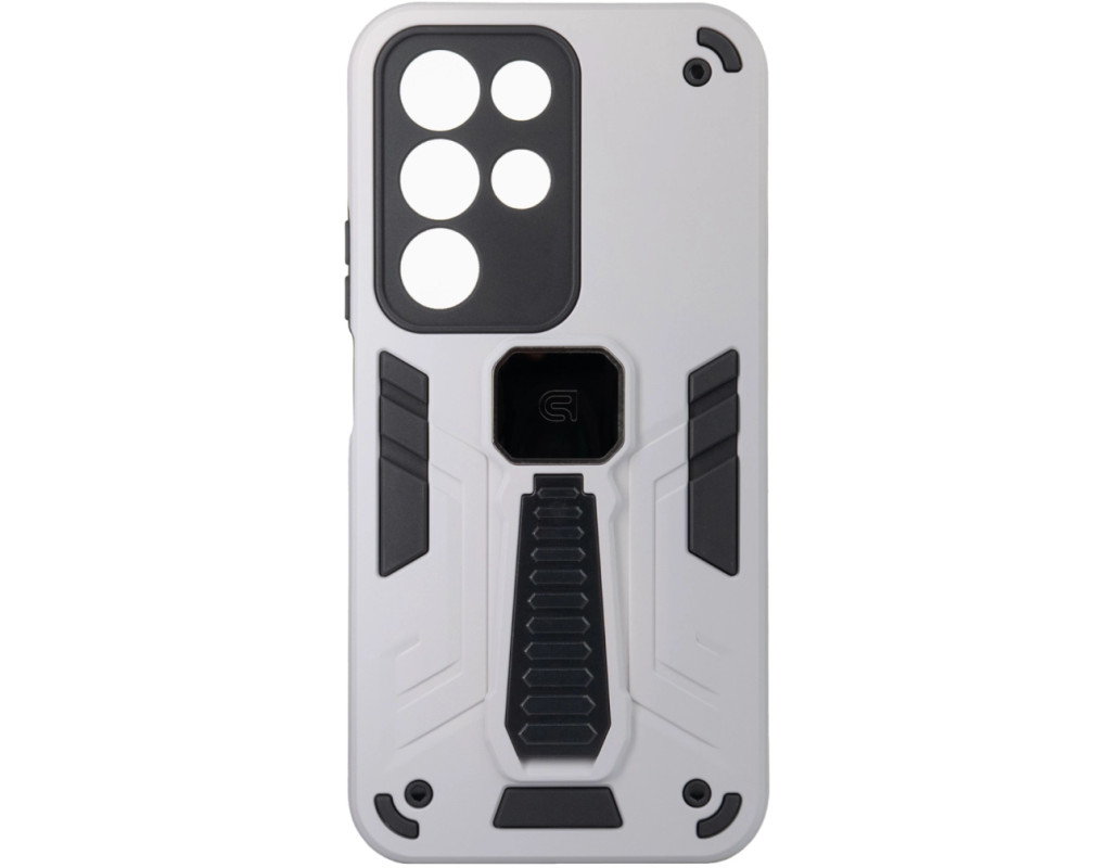 ArmorStandart Proover — це захисний чохол, створений для тих, хто шукає надійність, практичність і продумані деталі. Він забезпечує повноцінний захист смартфона, зберігаючи його функціональність та первісний стан у щоденному використанні. Конструкція поєднує два матеріали: м’який термопластичний поліуретан (TPU) ефективно поглинає удари та запобігає подряпинам, а зовнішній шар із полікарбонату (PC) захищає від механічних пошкоджень і потертостей. Посилені кути мінімізують ризик ушкоджень під час падінь, а блок камери повністю закритий, що забезпечує додатковий захист об’єктивів від подряпин і ударів. На спинці чохла вбудована металева пластина, яка дозволяє використовувати його з магнітними авто-тримачами, забезпечуючи комфорт і безпеку під час керування автомобілем. Чохол оснащений зручною відкидною підставкою, яка дозволяє встановити смартфон горизонтальному або вертикальному положенні для комфортного перегляду відео, відеодзвінків або роботи з контентом. Матове покриття приємне на дотик, стійке до відбитків пальців і подряпин. Особливості: