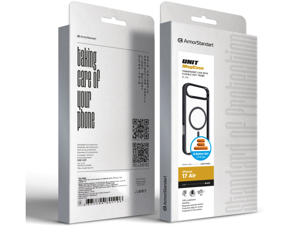 Чохол до мобільного телефона Armorstandart Unit MagCase Apple iPhone 17 Air Black + Orange Button Set (ARM90582)