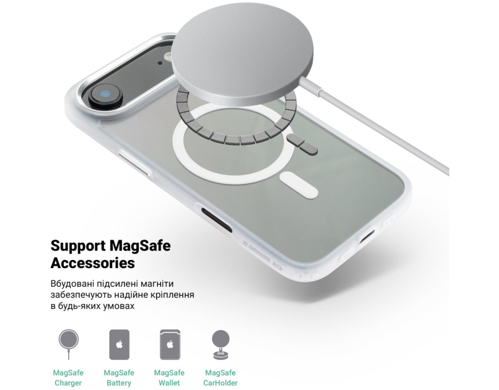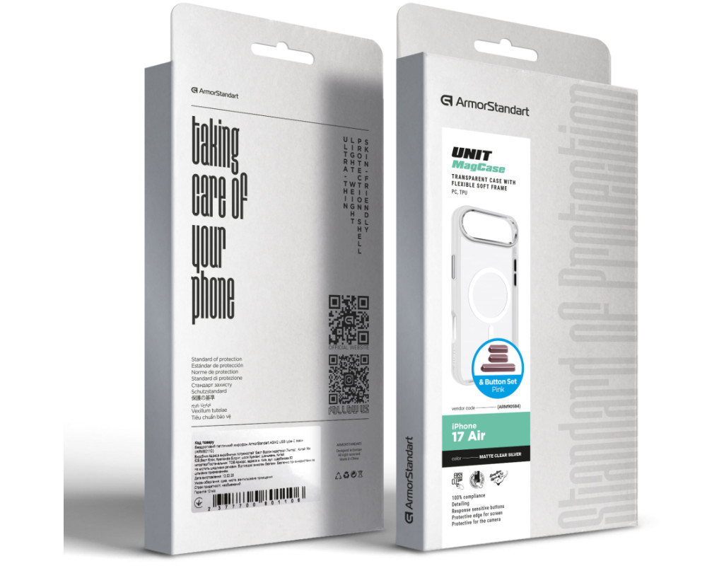 Чохол до мобільного телефона Armorstandart Unit MagCase Apple iPhone 17 Air Clear Silver + Pink Button Set (ARM90584)