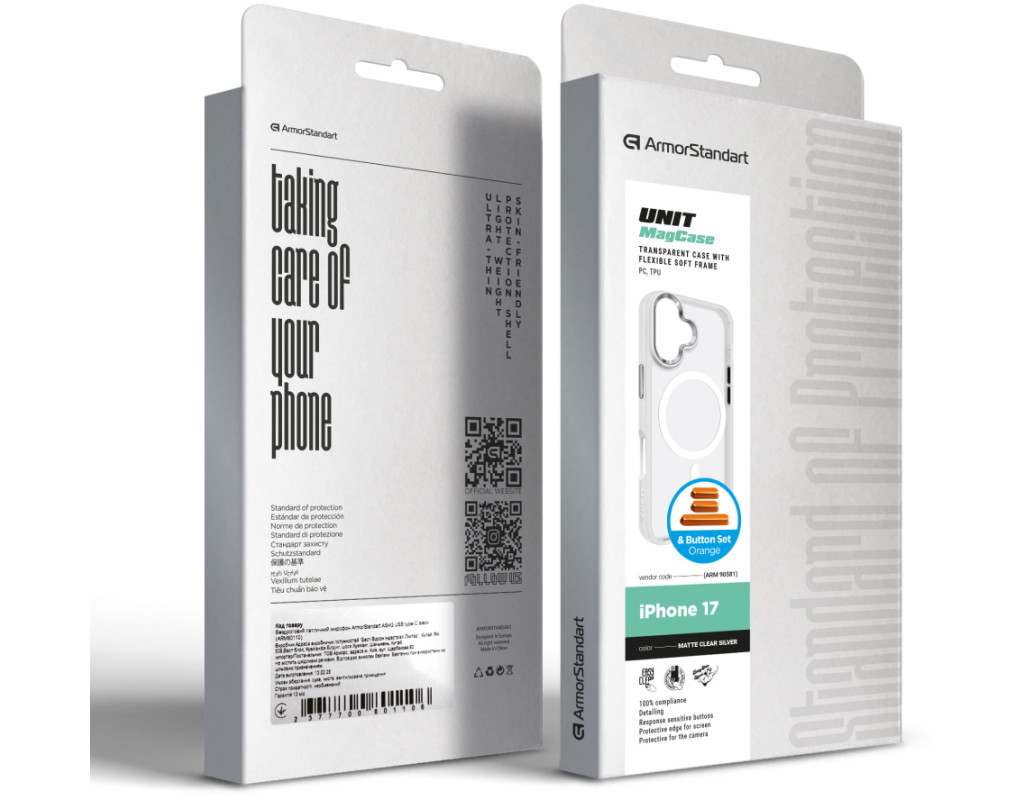 Чохол до мобільного телефона Armorstandart Unit MagCase Apple iPhone 17 Clear Silver + Orange Button Set (ARM90581)