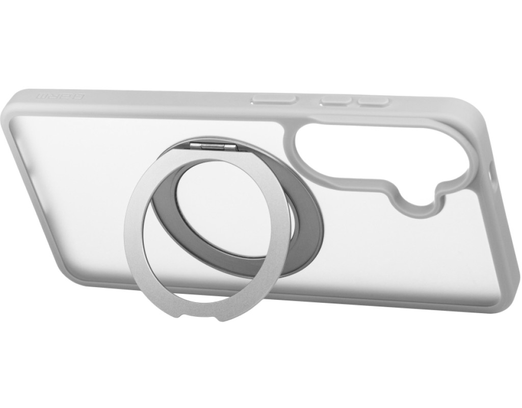 У центральній частині корпусу розташована поворотна підставка з кільцем, що обертається на 360°. Вона дозволяє використовувати смартфон у двох фіксованих положеннях: під кутом 35° для роботи з екраном і під кутом 60° для перегляду відео або відеодзвінків. Поворотний кронштейн має тонкий профіль і не створює додаткових виступів.