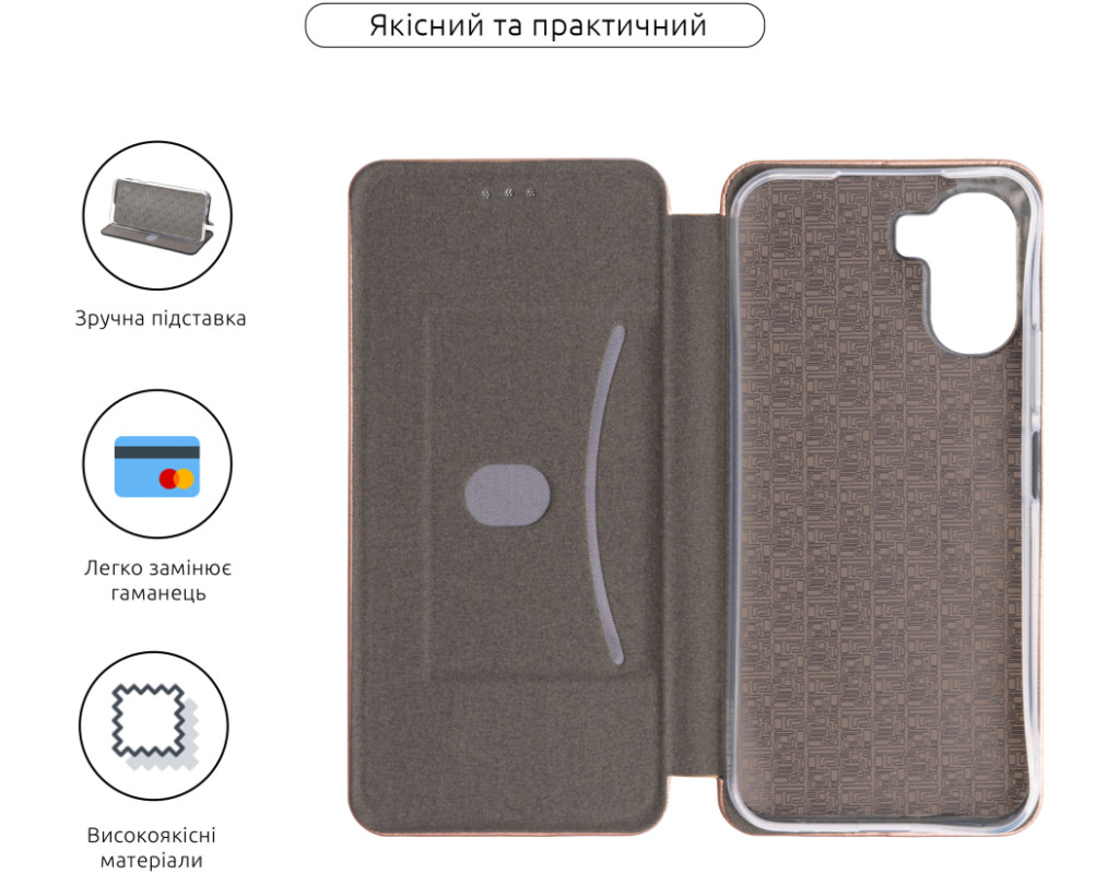 Тип чохла для телефону - книжка, Матеріал - поліуретан, Колір - рожеве золото, рожевий