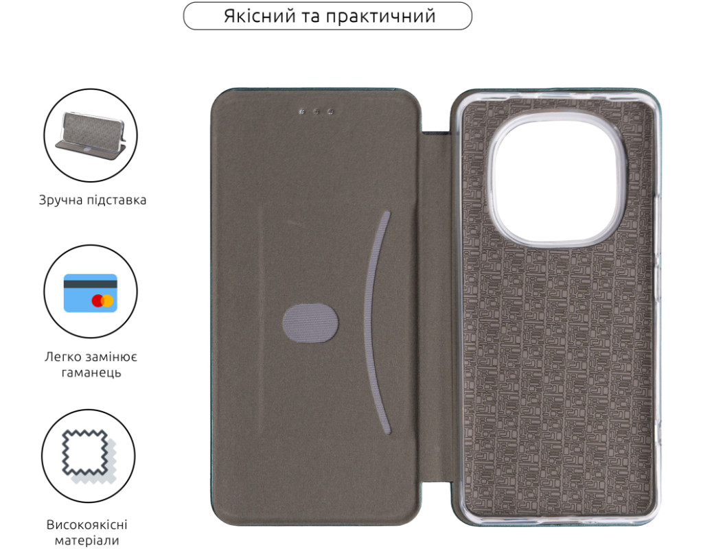 Тип чохла для телефону - книжка, Матеріал - поліуретан, Колір - зелений