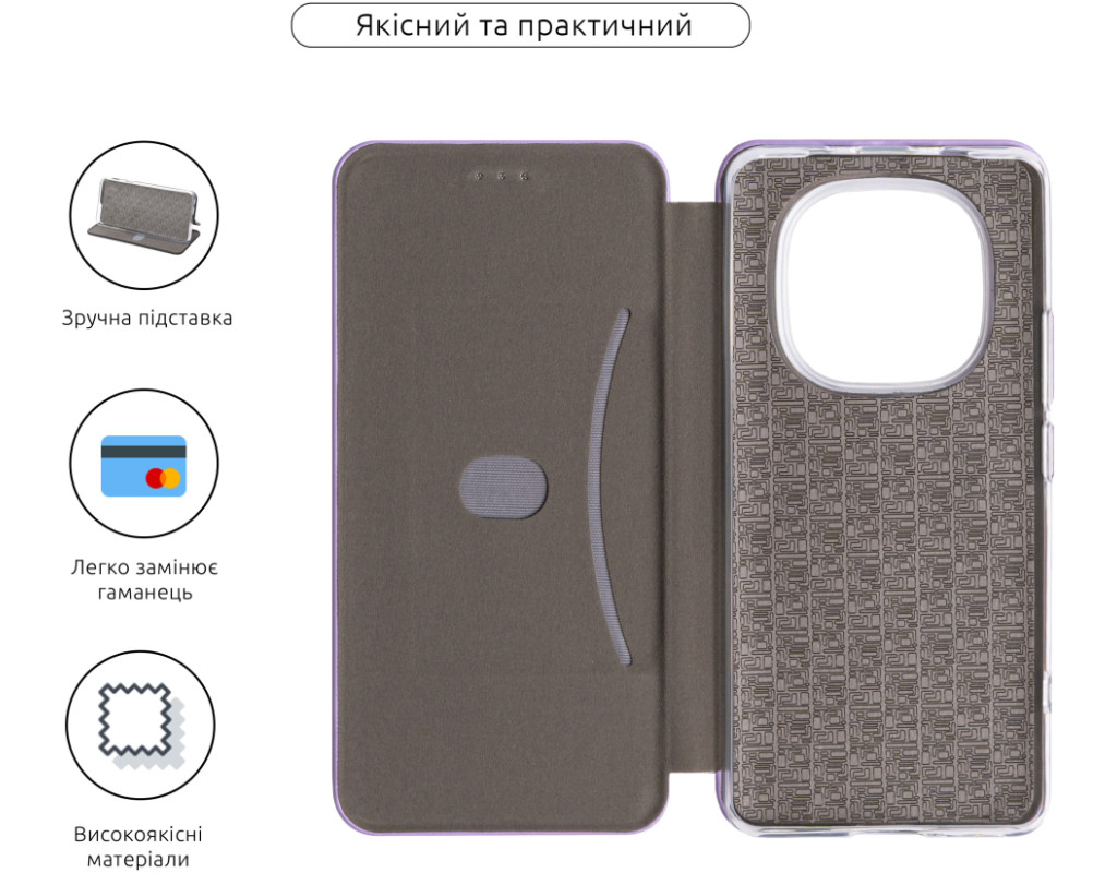 Тип чохла для телефону - книжка, Матеріал - поліуретан, Колір - фіолетовий, бузковий