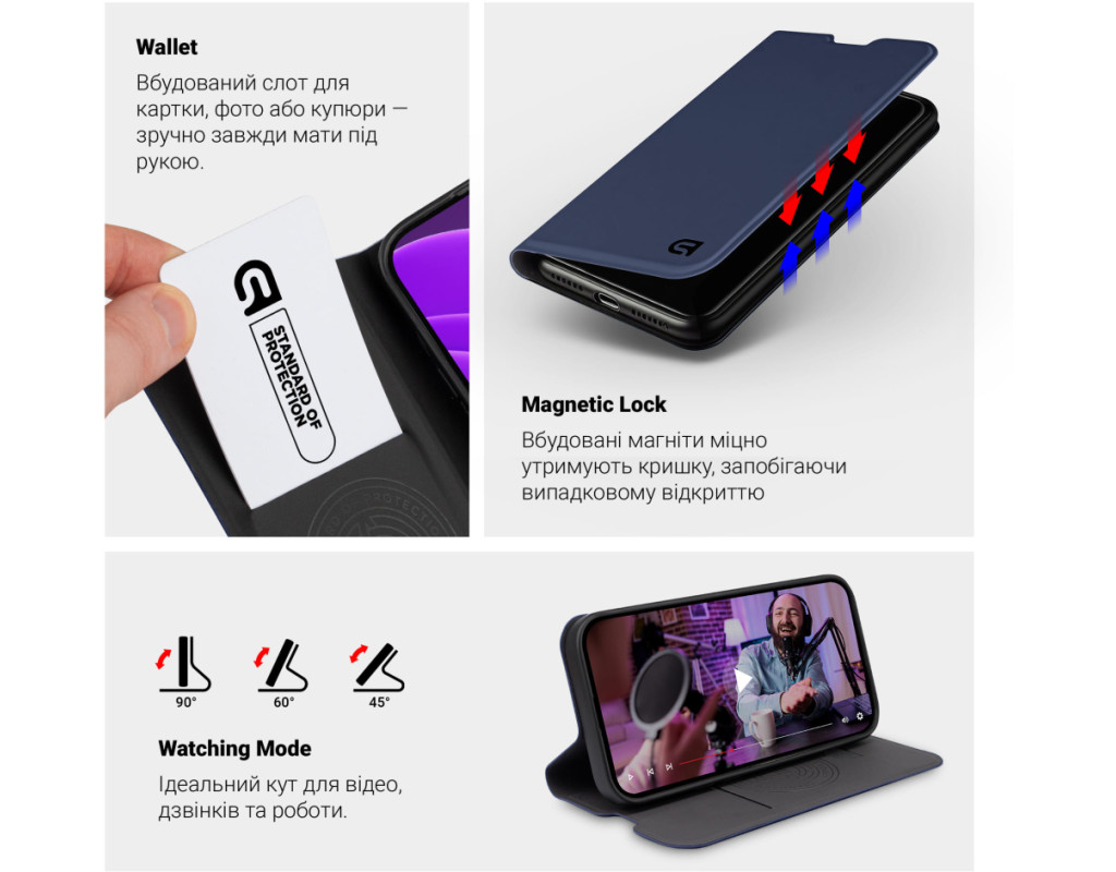 Крім цього, чохол ArmorStandart OneFold Case оснащений вбудованими магнітами, що дозволяє легко відкривати та закривати чохол. Це надає додатковий комфорт та швидкий доступ до вашого смартфона без зайвих зусиль.