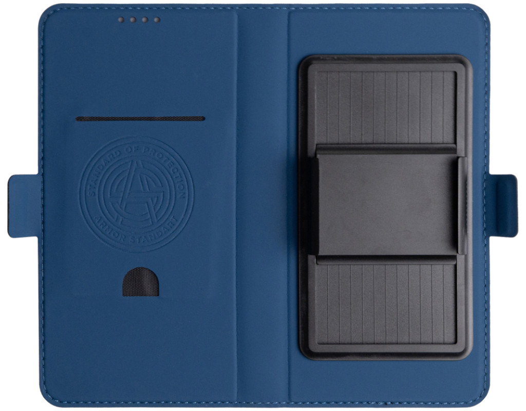Універсальний чохол-книжка ArmorStandart 6.5–7.0 розроблений для смартфонів великого формату та забезпечує комплексне закриття корпусу під час повсякденного використання. Конструкція формату book cover закриває дисплей і задню частину пристрою, зменшуючи контакт поверхонь смартфона з навколишніми предметами. Зовнішня частина виконана з поліуретану (еко-шкіра). Матеріал щільний, стійкий до стирання та добре тримає форму, що важливо для чохлів книжкового типу. Внутрішній тримач виготовлений з пластику та виконаний у вигляді рухомої платформи. Конструкція тримача передбачає механізм висування смартфона. Для використання камери достатньо зсунути тримач вгору — смартфон піднімається над корпусом чохла, відкриваючи доступ до камери. Це дозволяє робити фото або записувати відео без необхідності виймати телефон із чохла. Після зйомки тримач повертається у вихідне положення. Формат книжки закриває дисплей, тому передня панель працює як додатковий бар’єр під час транспортування смартфона в сумці або кишені. На внутрішній стороні передбачені відділення для пластикових карток, що дозволяє зберігати банківську картку, пропуск або проїзний разом зі смартфоном. Універсальна конструкція розрахована на смартфони з діагоналлю екрана від 6.5 до 7.0 дюймів, що робить модель придатною для використання з різними пристроями. Особливості: