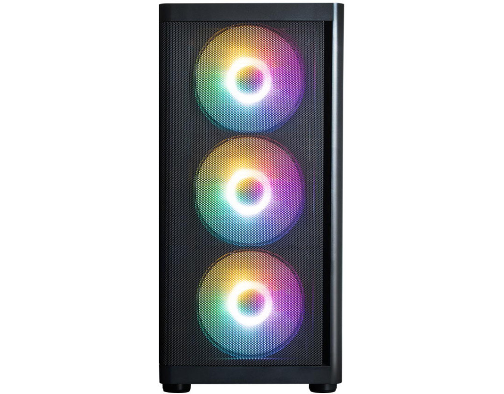 Корпус виготовлений із міцної сталі із чорним покриттям, яке нанесено спеціальним методом. Покриття надійне та досить стійке до можливих механічних пошкоджень, тертя. У корпусі немає гострих або невідшліфованих граней, що важливо при самостійному чи промисловому складанні. Бічна панель з якісного загартованого скла зі зручним та практичним кріпленням – підкреслює візуальний ефект інтер`єру корпусу та виглядає стильно. Продуманий кабель менеджмент дозволяє розмістити кабелі підключення компонентів акуратно та раціонально. У комплекті шість 120 мм FRGB вентиляторів. Яскраве FRGB підсвічування вентиляторів привертає увагу. Вентилятори підключені до кнопки на панелі вводу, за допомогою якої можливо їх вмикати та вимикати. |