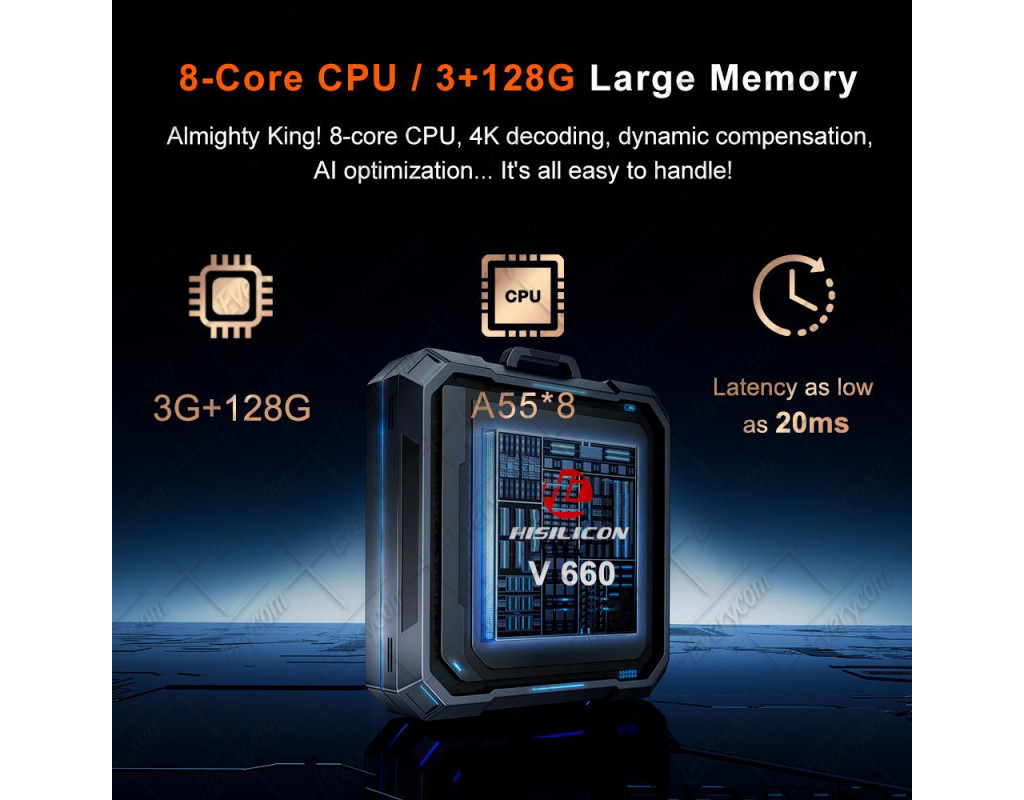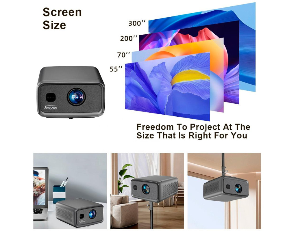 Everycom Cubelite Ultra — це сучасний та продуктивний LCD-проектор з яскравістю 3800 ANSI люмен, підтримкою 4K і вбудованою платформою Android 15. Завдяки автофокусу, якісному звучанню та потужному процесору він забезпечує стабільну, чітку та яскраву картинку. Підходить як для домашнього кінотеатру, так і для навчальних чи офісних презентацій. Основні можливості Яскравість 3800 ANSI — чітке зображення навіть при денному освітленні. Android 15 — встановлення стрімінгових і мультимедійних додатків. Потужний 8-ядерний процесор — Cortex A55*8-Core CPU Hisilicon HI3751 V660 4K 60fps підтримка / фізичне 1080P — висока деталізація та якість картинки. MEMC — Motion Estimation, Motion Compensation - оцінка та компенсація руху. Автофокус — миттєве налаштування чіткості без ручних корекцій. Проекція 55–300" — підходить для будь-яких сценаріїв використання. Динаміки 10Wх3 — гучний, чистий звук без додаткової акустики. Wi-Fi 2.4/5G — стабільне підключення для перегляду онлайн-контенту. Порти: USBх2, HDMI, AUX, RJ45. Технічні параметри Тип: LCD проектор Лампа: LED, ресурс 20 000 годин Контрастність: 10000:1 Дистанція проекції: 1.6–9 м Формати: 16:9 / 4:3 Процесор: Hisilicon HI3751 V660 Cortex-A55 8 ядер Графіка: Mali-G52 MC1 600M ОЗП: 3G Пам’ять: 128G Мови інтерфейсу: українська, іспанська, нідерландська, французька, німецька, англійська Переваги моделі Потужна яскравість для чистої картинки навіть у світлих приміщеннях Три динаміки 10W забезпечують насичений і глибокий звук Android 15 з великим вибором застосунків Автофокус для максимальної зручності Компактний корпус — легко брати з собою в дорогу Де можна використовувати Домашній кінотеатр: перегляд фільмів у високій якості на великому екрані Освіта та бізнес: презентації, лекції, тренінги Вулиця: зовнішні перегляди на великому екрані у вечірній час Everycom Cubelite Ultra — це універсальне рішення, яке поєднує високу якість проєкції, сучасні технології та зручність використання як вдома, так і в роботі. |