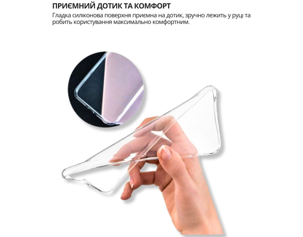 | "Тонкий і еластичний силіконовий чохол забезпечує надійний захист вашого смартфона від механічних пошкоджень, запобігаючи появі подряпин на корпусі. Завдяки високій якості матеріалу, чохол зберігає свою цілісність — він не рветься та не тріскається навіть при тривалому використанні. Чохол легко встановлюється, щільно прилягає до поверхні смартфона, не залишаючи повітряних зазорів, які могли б накопичувати пил, бруд або вологу. Легкий і непомітний, він не додає зайвого об'єму чи ваги вашому пристрою, забезпечуючи надійний захист від ударів, пошкоджень і вологи. Усі вирізи в чохлі точно відповідають роз'ємам і функціональним кнопкам смартфона, що гарантує зручне користування в будь-яких умовах. Силіконове покриття не ковзає, щільно облягає металевий корпус телефону та не перешкоджає доступу до роз'ємів для зарядки, USB-кабелю, гарнітури чи сканера відбитків пальців. Цей силіконовий чохол стане ідеальним вибором для тих, хто шукає стильний і практичний аксесуар для свого смартфона." |