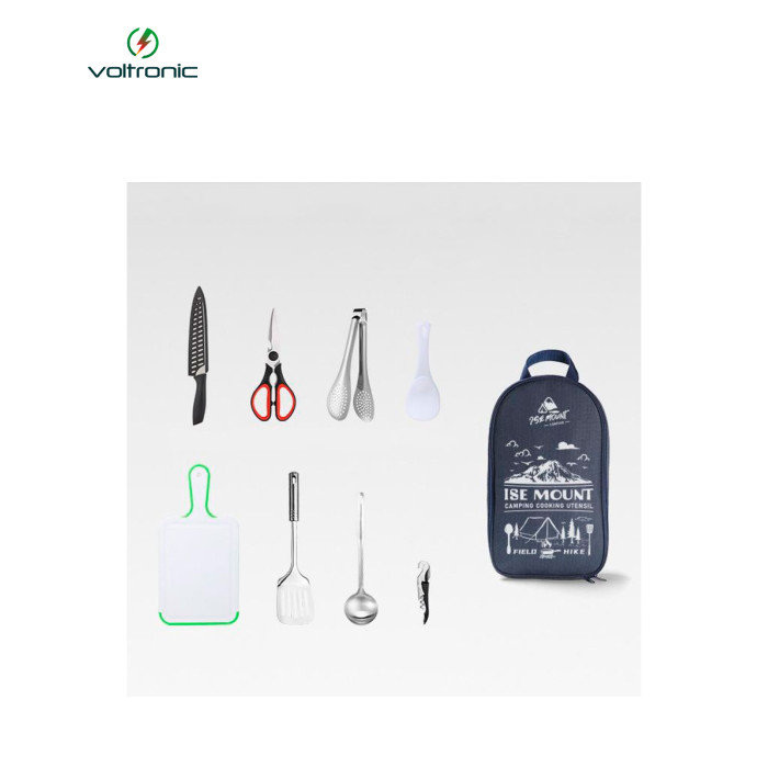 Набір з 9 предметів похідний, ніж, ножиці, щипці для їжі, ложка, обробна дошка і т.д. Сумка із принтом 350х210х60мм. 950 гр. Blue