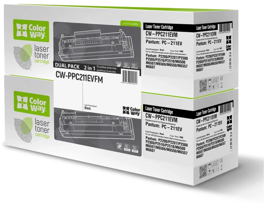 Картридж ColorWay Pantum (PC-211EV) P2200/2207/2506/M6500/M6607 Black, DUAL PACK (CW-PPC211EVFM)