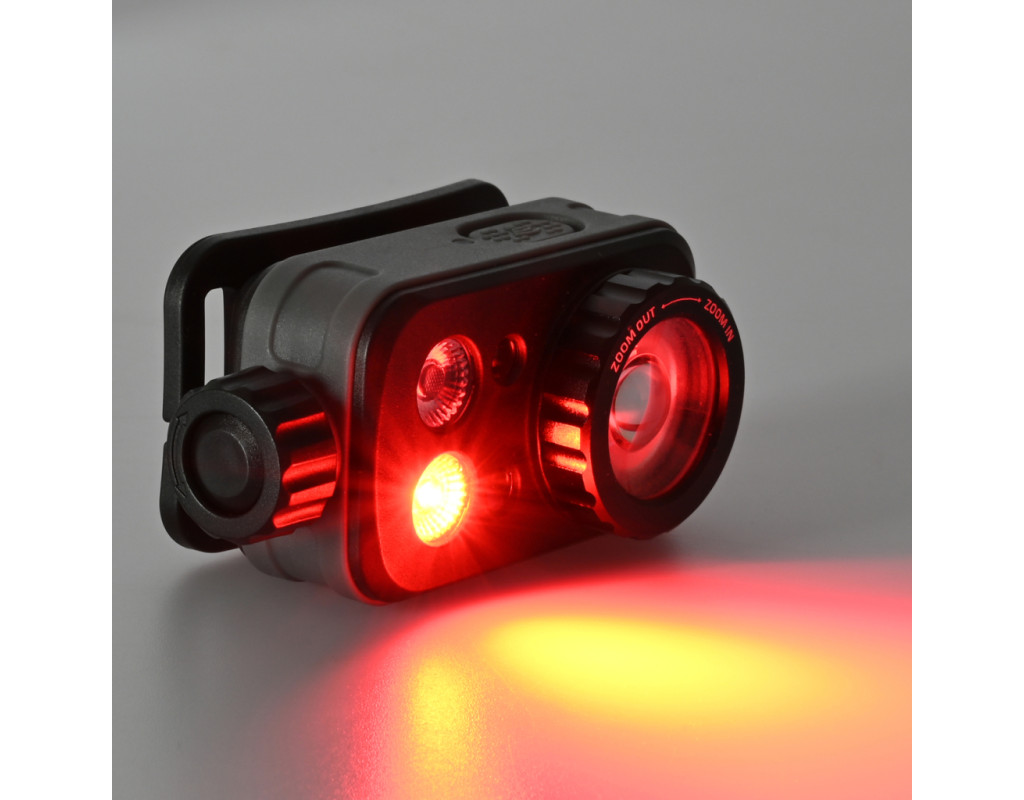 - RED LOW (Режим червоного світла мінімальної яскравості) – яскравість світла 5Lm. Дистанція освітлення налічує 2м. Тривалість роботи 50год. Інтенсивність світлового потоку 1cd.