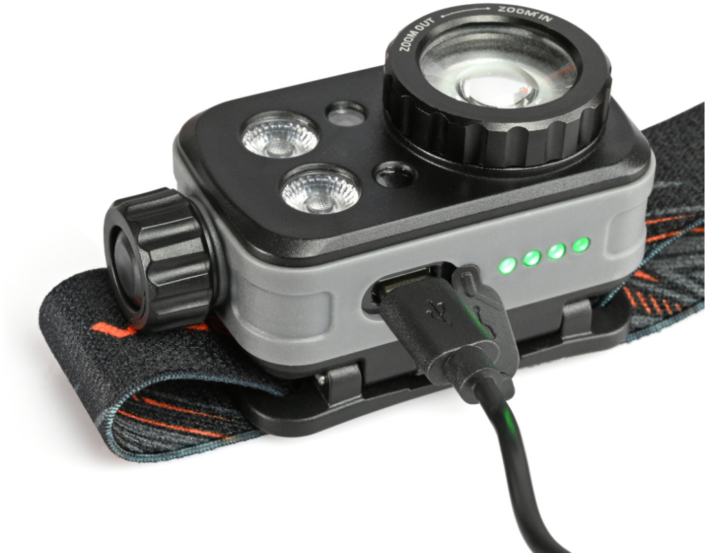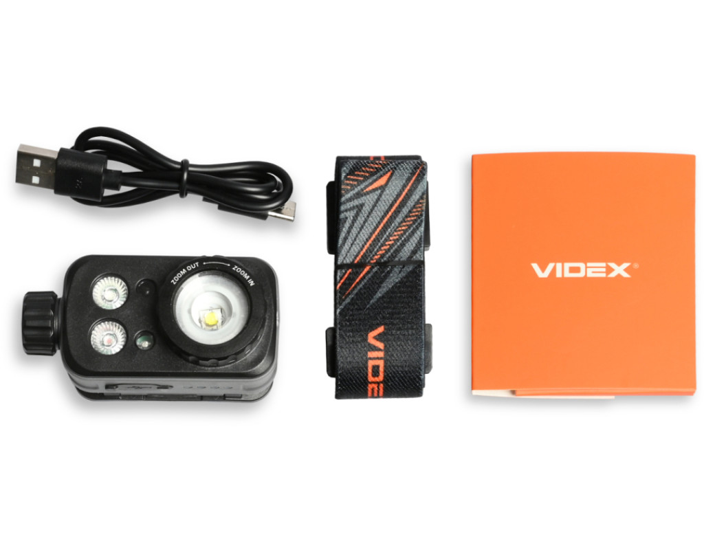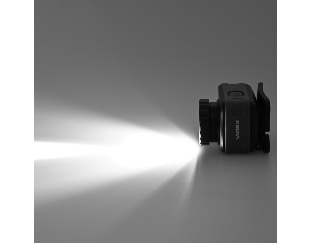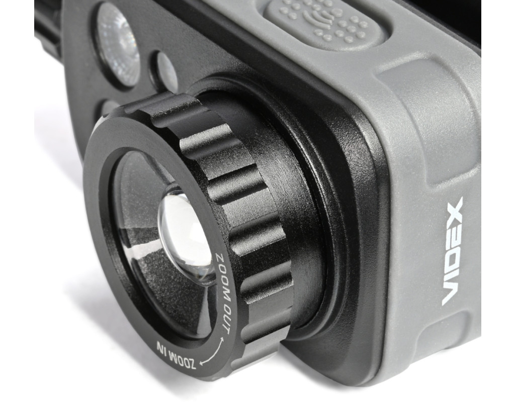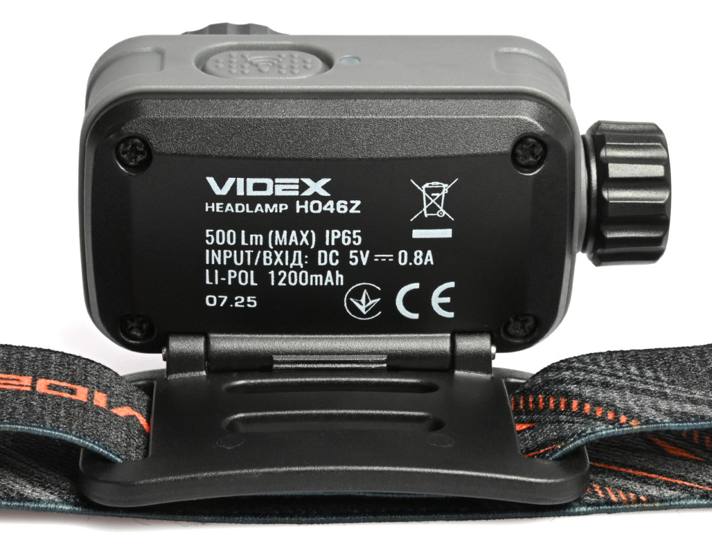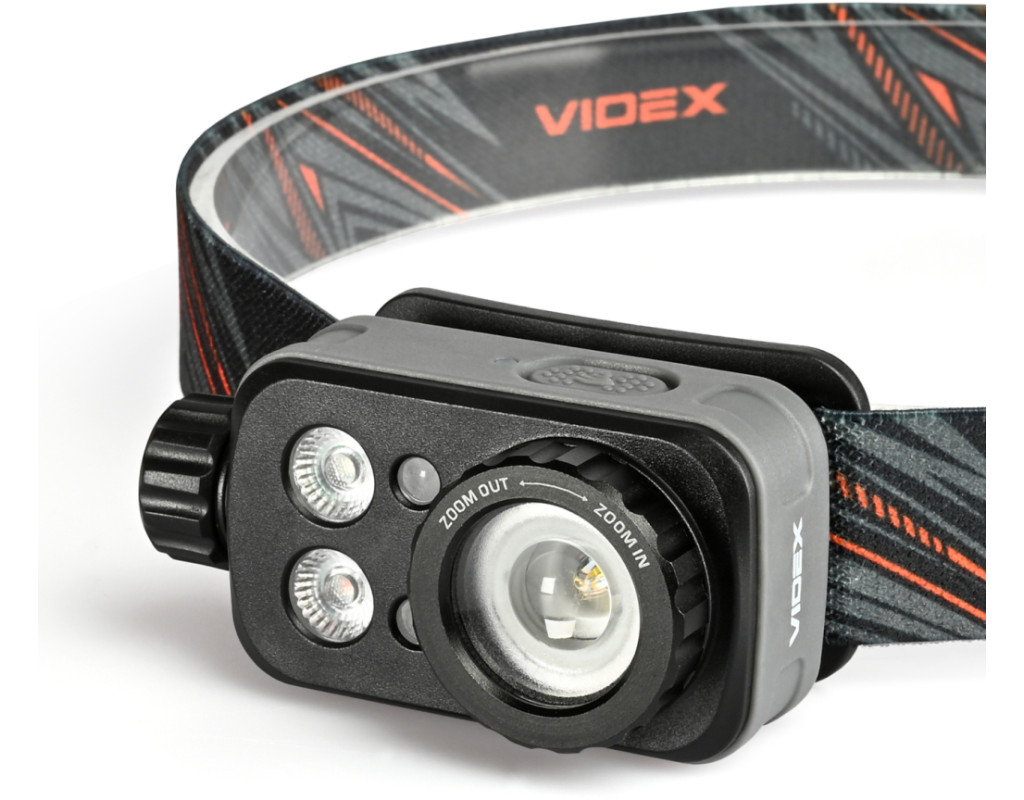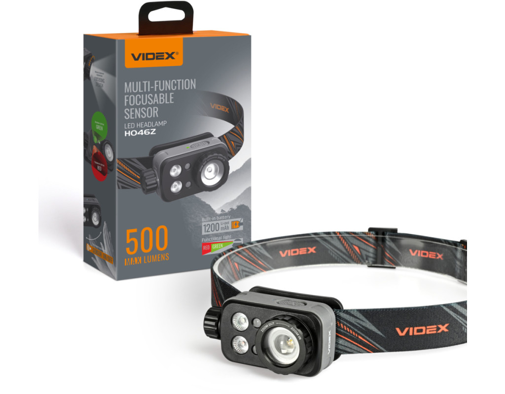 Налобний світлодіодний ліхтарик VIDEX VLF-H046Z 500Lm 5000K. Має біле, потужне червоне та зелене світло. Завдяки наявності 12 режимів, функції фокусування променя, класу захисту від пилу та вологи (IP65), класу захисту від падіння до 2м та можливості регулювати кут нахилу він має велику кількість сценаріїв для використання. Керувати режимами ліхтарика можна як за допомогою кнопок на його корпусі, так і за допомогою помахів руки завдяки наявності датчика руху. Ліхтарик працює від вбудованого акумулятора Li-pol ємністю 1200mAh. Вбудований акумулятор можна замінити самостійно тільки після закінчення гарантійного терміну. Процес заміни описано в інструкції. Зверніть увагу, що в разі самостійної заміни акумулятора під час дії гарантійного періоду гарантія на ліхтарик анулюється. КЕРУВАННЯ ЛІХТАРИКОМ Керування ліхтарика відбувається за допомогою поворотного перемикача, бічної та сенсорної кнопки, механізму фокусування променю світла. 1. Увімкнення світла та перемикання між режимами яскравості здійснюється обертанням поворотного перемикача. Щоб увімкнути світло на найнижчому рівні яскравості, поверніть перемикач на один крок вперед "від себе". Щоб збільшити яскравість, продовжуйте обертати перемикач. Це дозволяє швидко перемикатися між режимами. 2. Перемикайтесь між кольорами, натискаючи і утримуючи бічну кнопку ввімкненого ліхтарика протягом 0.5 секунди. 3. Щоб активувати режим датчика руху, натисніть один раз кнопку датчика на ввімкненому ліхтарику, розташовану на верхній частині його корпусу. Про ввімкнення датчика сповіщатиме індикатор, що світитиметься поруч із кнопкою датчика. Поки датчик активний, махніть рукою один раз приблизно за 5 см перед ліхтарем, щоб тимчасово вимкнути його. Махніть рукою ще раз, щоб знову ввімкнути його в останньому обраному режимі. 4. Щоб деактивувати датчик руху, натисніть кнопку датчика один раз або поверніть поворотний перемикач до упору "на себе". 5. Щоб налаштувати кут променя світла, поверніть механізм фокусування праворуч або ліворуч. 6. Щоб вимкнути ліхтарик, поверніть поворотний перемикач до упору "на себе". РЕЖИМИ РОБОТИ ЛІХТАРЯ