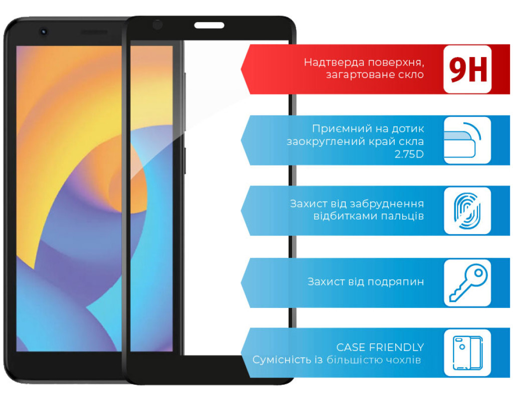 - Рівень міцності: 9H. Мінімізує ризик пошкодження передньої панелі мобільного пристрою під час повсякденного використання.