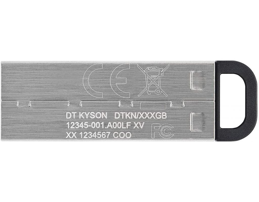 DataTraveler Kyson від компанії Kingston — швидкісний, малогабаритний і легкий USB-накопичувач із роз'ємом USB Type-A, що забезпечує надійне зберігання й передавання повсякденних даних між пристроями, що підтримують USB Type-A під'єднання. Він має у своєму розпорядженні достатній обсяг пам'яті, щоб можна було взяти із собою робочі файли та світлини. Призначений для використання з ноутбуками, настільними ПК, медіаплеєрами, телевізорами та будь-якими іншими пристроями, що мають роз'єм USB Type-A, цей високопродуктивний флешнакопичувач забезпечує швидкий і зручний обмін файлами. Компактний дизайн у металевому корпусі з петлею для кріплення, наприклад, до в'язки ключів, робить його ідеальним сховищем для даних, які потрібні завжди із собою. Особливості: - Сховище USB Type-A — ідеальне для використання з ПК, ноутбуками, медіаплеєрами, телевізорами та будь-якими іншими пристроями, що мають такий порт.