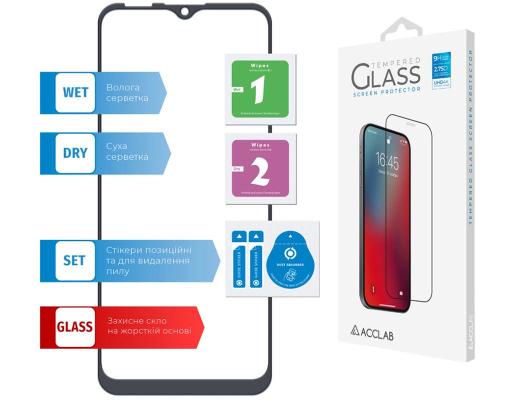 • Клейовий шар нанесений на всьому склі. Завдяки цьому, забезпечує надійну та сильну фіксацію всього скла, а не лише його країв. У разі потреби таке скло можна легко зняти без ризику пошкодити екран або його покриття.