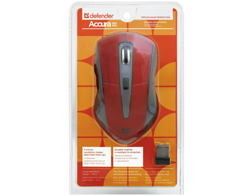 | Мишка Defender Accura MM-965 Red (52966) — це елегантне рішення для тих, хто цінує зручність і стиль в кожній деталі. Створена спеціально для використання з ноутбуками, вона поєднує в собі компактність портативної та класичної мишки. Її насичений червоний колір додає яскравого акценту, тоді як надміцне глянсове покриття захищає від подряпин, забезпечуючи довговічність та збереження привабливого вигляду. Завдяки бездротовому USB адаптеру 2.4 ГГц, мишка забезпечує стабільний зв'язок без затримок або перебоїв, а радіус дії до 10 метрів відкриває нові можливості для роботи на відстані. Мініатюрний наноприймач легко зберігається всередині корпусу, що мінімізує ймовірність втрати або поломки. Важливою перевагою Defender Accura MM-965 є можливість налаштування швидкості курсора з перемиканням між трьома режимами роздільної здатності: 800, 1200 і 1600 dpi. Це дозволяє адаптувати мишку під різні завдання — від точного редагування графіки до швидкого перегляду веб-сторінок. Мишка обладнана п'ятьма кнопками, серед яких дві програмовані бічні кнопки для підвищення ефективності роботи з програмами. Така функціональність забезпечує зручність при виконанні рутинних задач та максимальну оперативність у взаємодії з комп'ютером. <Размеры мишки — 100 х 60 х 35 мм, що робить її компактною, але дуже ергономічною. Живлення здійснюється від двох батарейок AAA, що гарантує її довготривале використання без необхідності частого заміщення джерел енергії. Мишка Defender Accura MM-965 Red — це поєднання надійності та стилю, яке робить її незамінним атрибутом сучасного користувача, що веде активний спосіб життя. Її властивості та можливості відкривають нові горизонти, надаючи користувачу повний контроль в будь-яких умовах, будь то робота вдома, в офісі чи під час подорожей. |