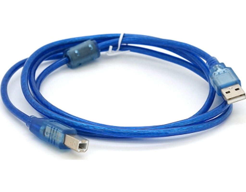 Основні технічні характеристики: - Тип інтерфейсу: USB 2.0 High-Speed - Швидкість передачі: до 480 Мбіт/с - Довжина кабелю: 1.5 метра - сила струму: до 2.4А - Напруга: 5В ±5% - Роз`єми: USB Type-A (AM) male - USB Type-B (BM) male - Матеріал провідників: безкиснева мідь 28AWG - Наявність феритового фільтра: 1 кільце - Опір ізоляції: ≥100 МОм - Робоча температура: від -20 ° C до +60 ° C - Строк служби: ≥5000 циклів підключення - Матеріал оболонки: ПВХ - Колір: прозорий синій