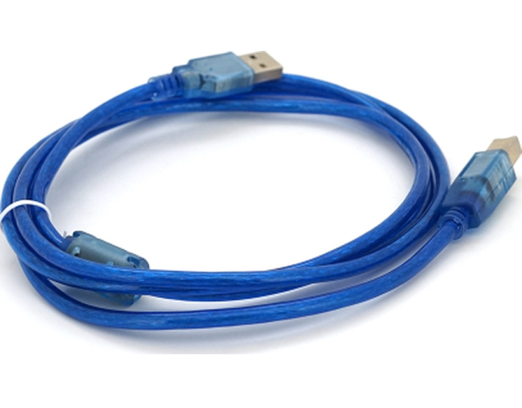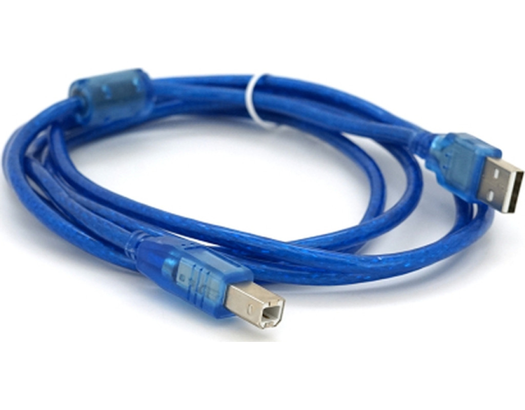 Основні технічні характеристики: - Тип інтерфейсу: USB 2.0 High-Speed - Швидкість передачі: до 480 Мбіт/с - Довжина кабелю: 1.8 метра - сила струму: до 2.4А (максимальна) - Напруга: 5В ±5% - Матеріал провідників: безкиснева мідь 28AWG - Тип роз`ємів: USB-A Male to USB-B Male - Наявність феритового фільтра: 1 кільце - Матеріал ізоляції: прозорий ПВХ синього кольору - Робоча температура: від -20 ° C до +60 ° C - Опір ізоляції: ≥100 МОм - Строк служби: ≥5000 циклів підключення - Сумісність: принтери, сканери, зовнішні жорсткі диски, аудіоінтерфейси